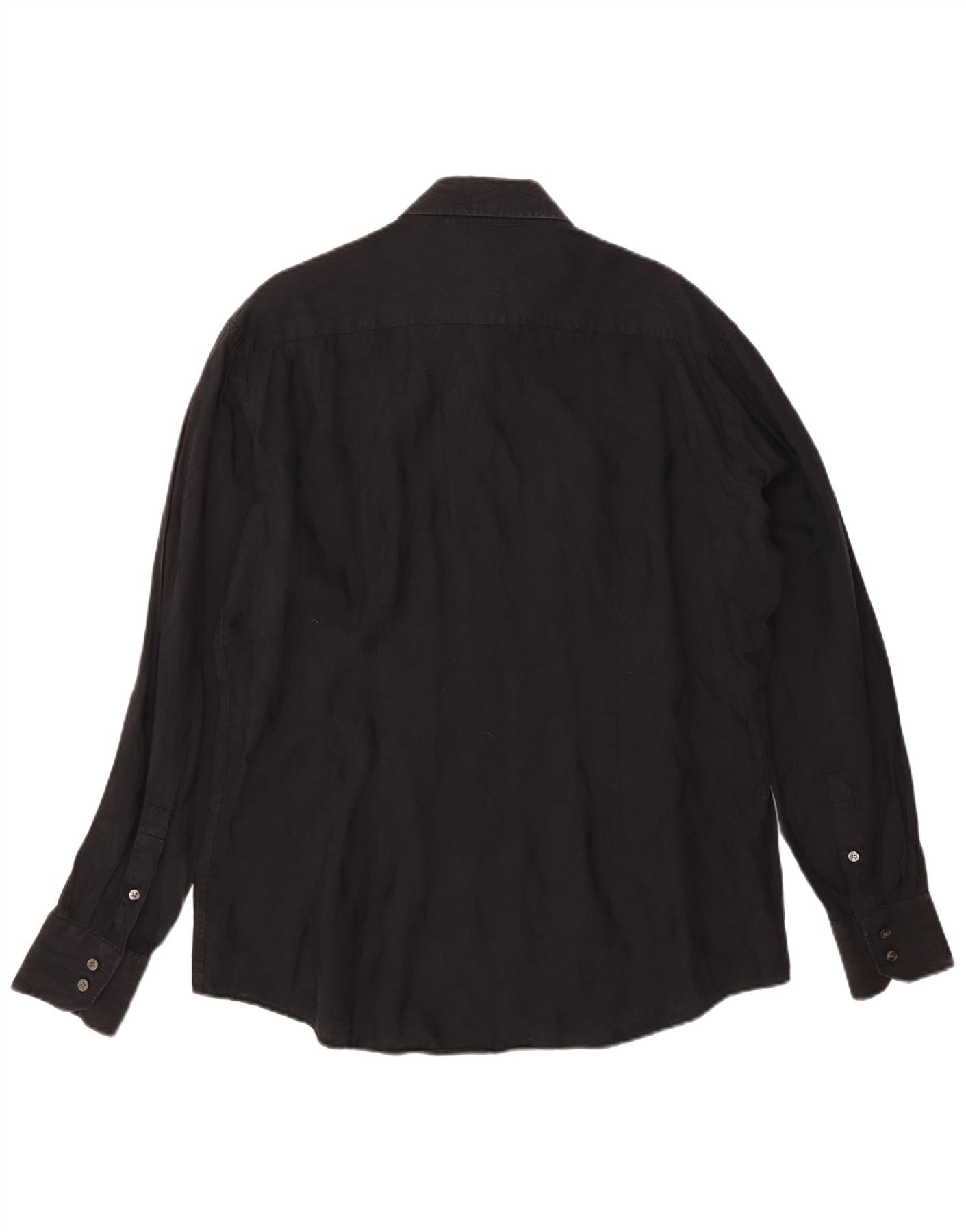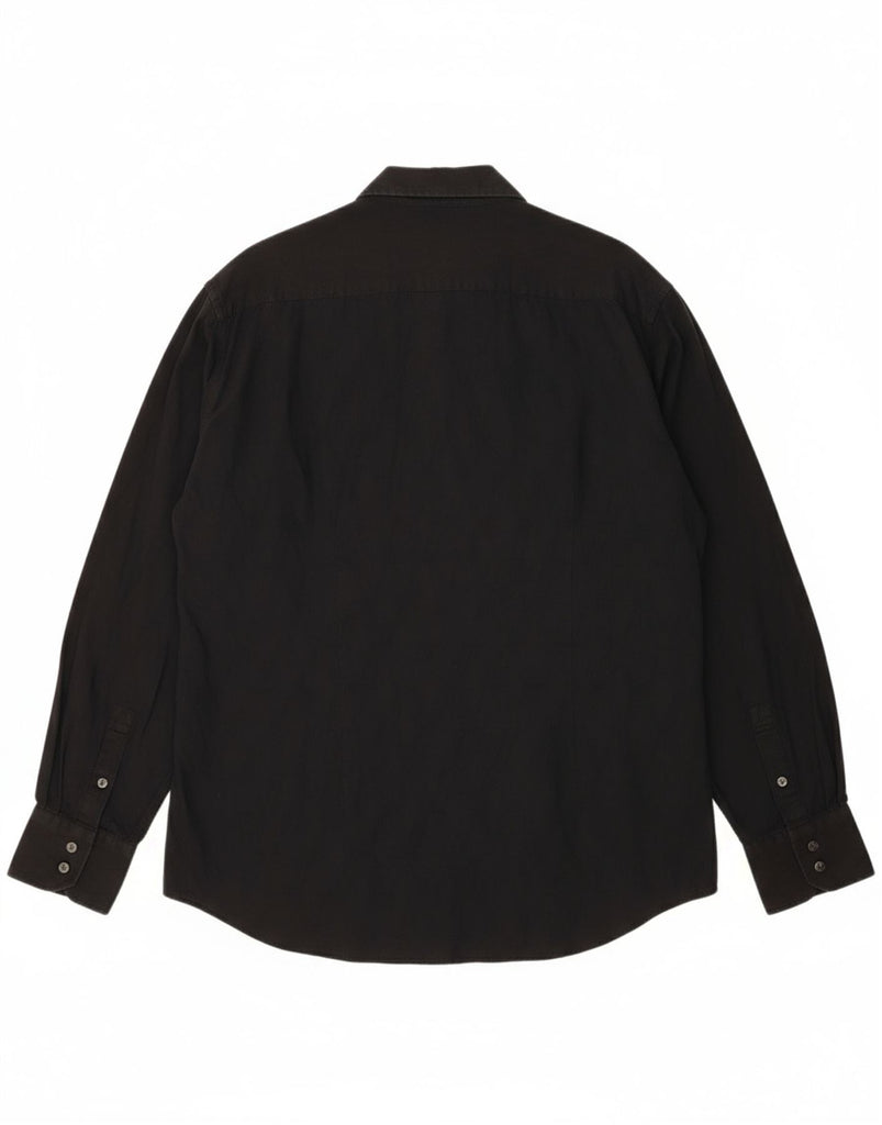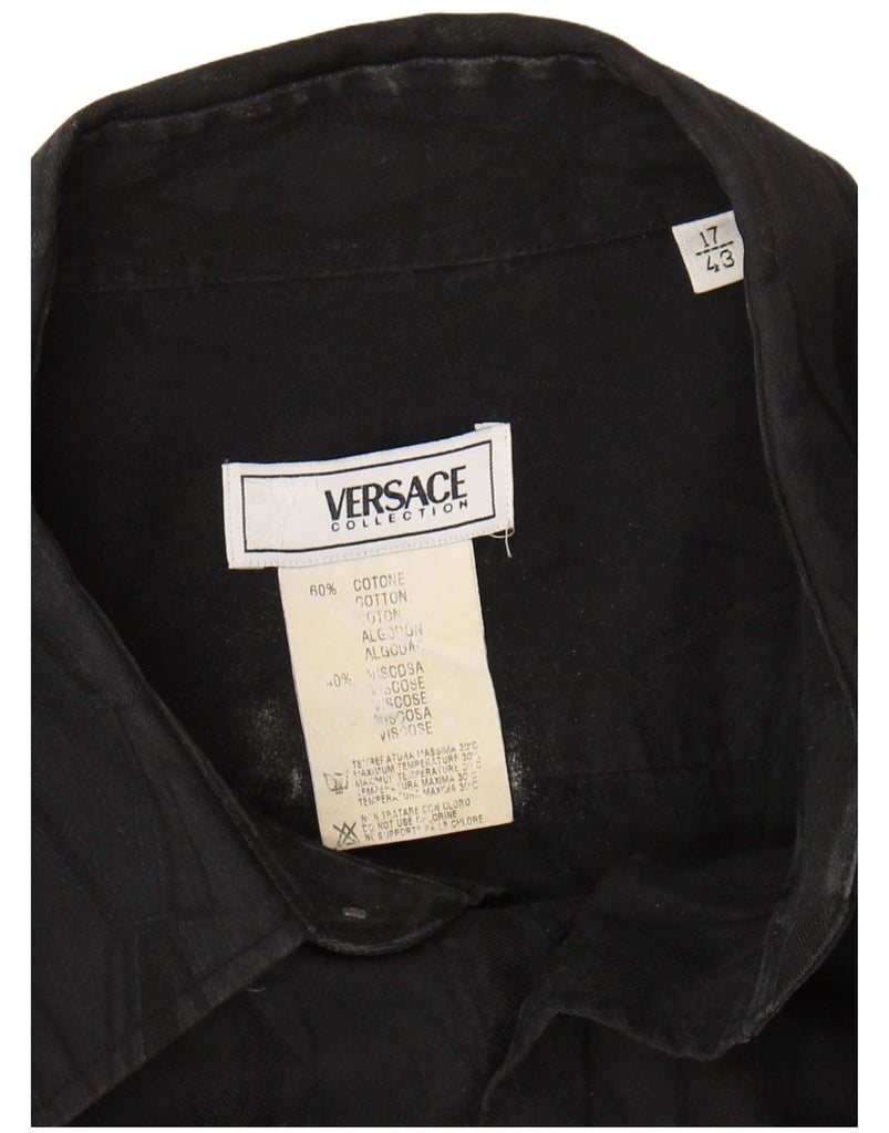 - AI Description: This Versace mens shirt is crafted from a comfortable black cotton and viscose blend. The collared neckline and full button-up front offer a classic, refined look. Long sleeves finish with neat cuffs, enhancing the structured silhouette. A regular fit ensures ease of movement and timeless appeal. Subtle pockets add practical detail to this versatile garment.