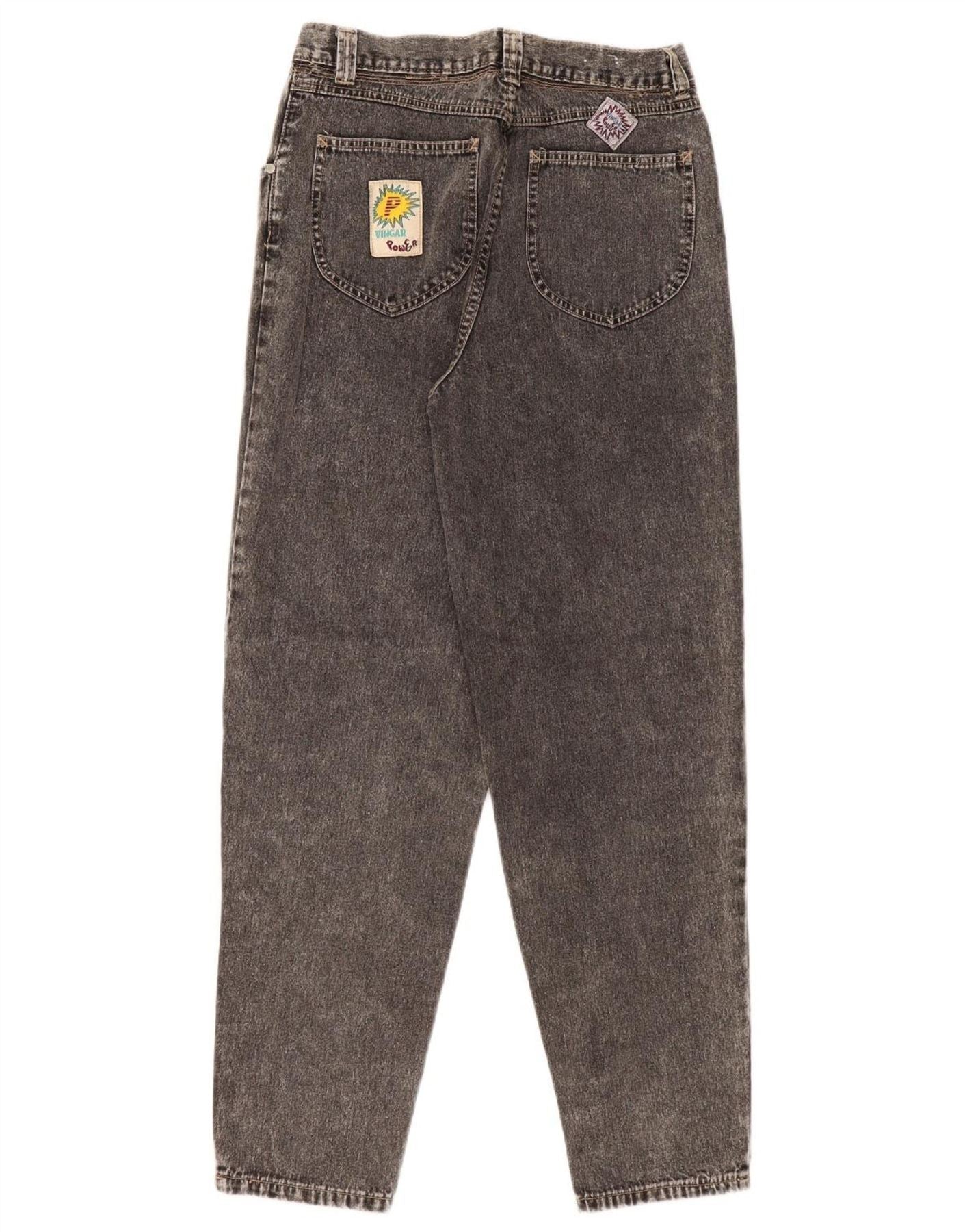 - Description de l'IA : Ce jean taille haute Vingar pour femme est confectionné à partir de denim noir délavé à l'acide, offrant une finition texturée distinctive. Il présente une taille haute et une coupe décontractée sur la jambe. Une fermeture à glissière assure un devant sécurisé. Des poches pratiques sont incluses et un subtil logo de la marque ajoute une touche signature. Le style des années 90 est évident dans la silhouette ample et effilée, offrant à la fois confort et esthétique rétro.
