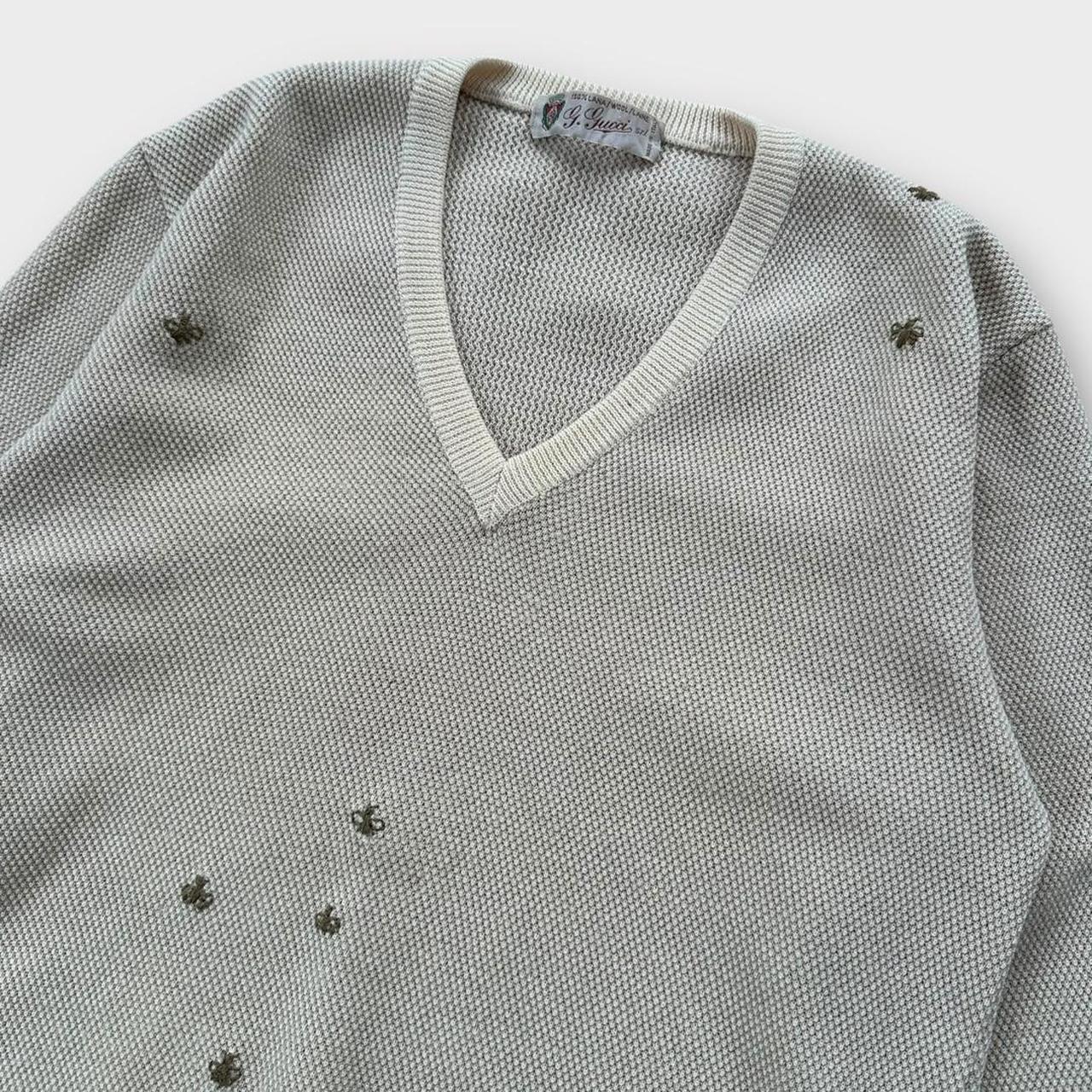 pull en tricot Gucci original vintage des années 1990 en beige avec des G brodés et des abeilles Gucci partout montrées sur les photos