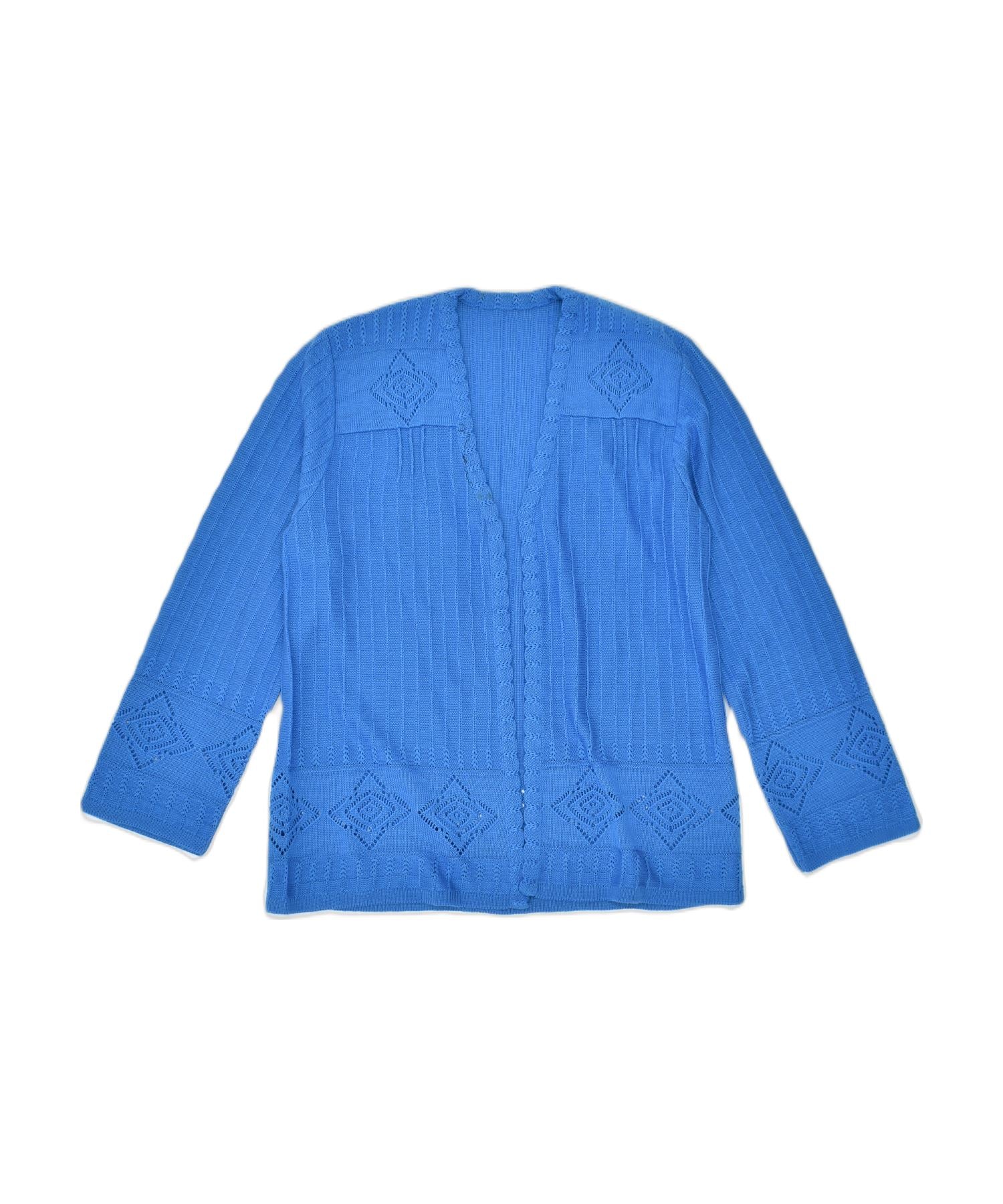 VINTAGE Femme Cardigan Ouvert Pull UK 12 Bleu Moyen Coton Classique