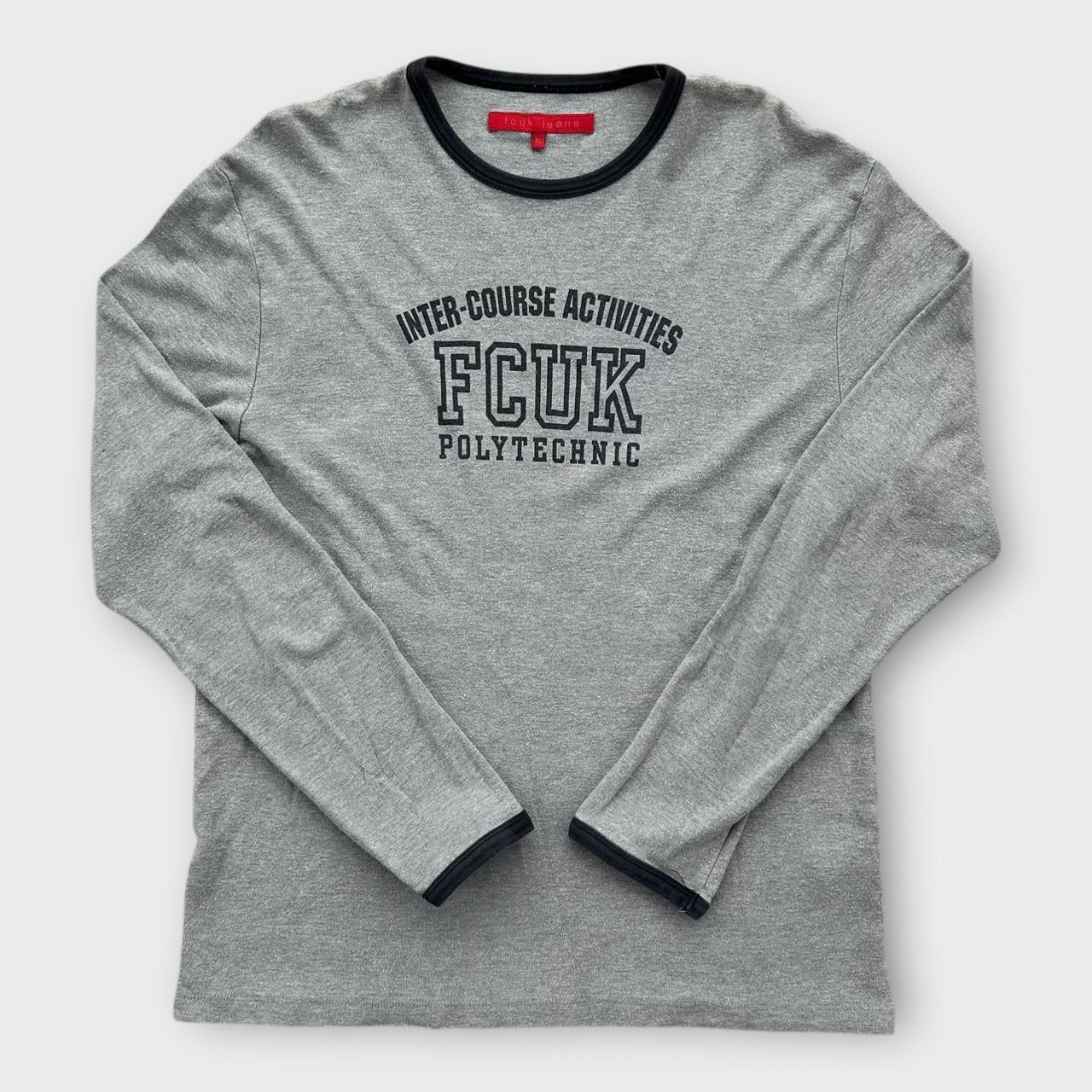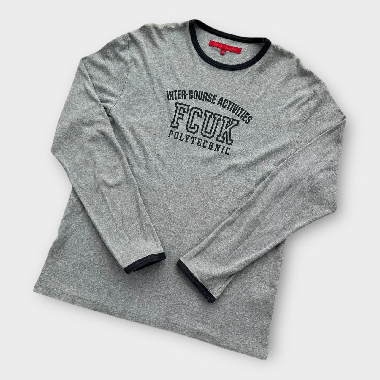 T-shirt à slogan à manches longues FCUK vintage du début des années 2000 en gris