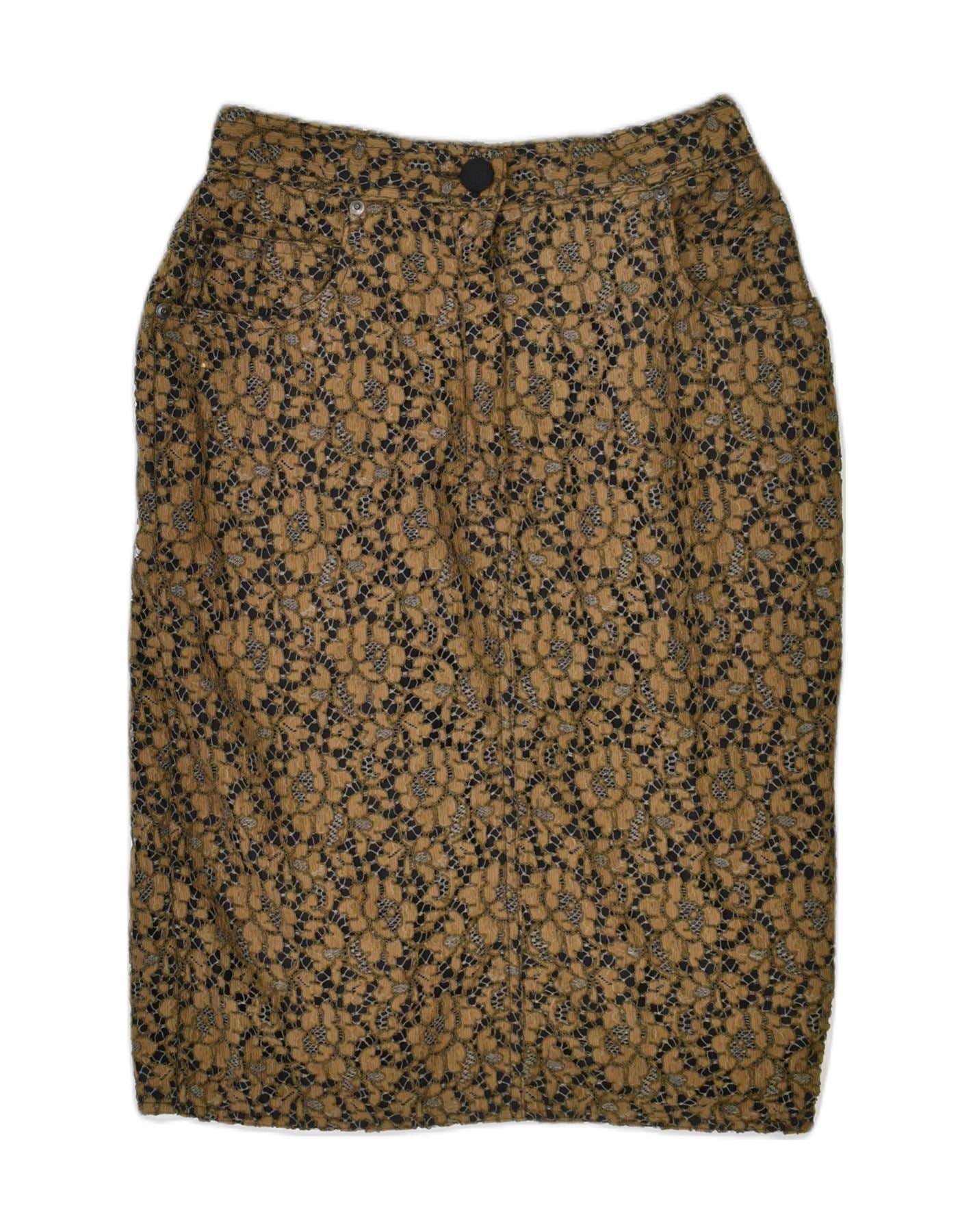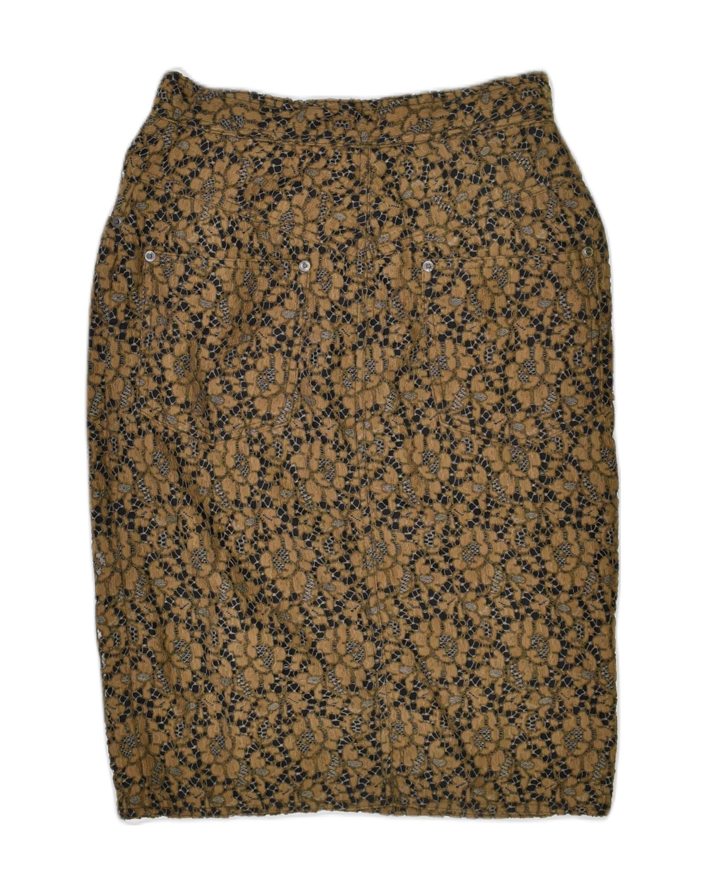 VINTAGE Jupe crayon slim femme IT 42 Medium W26 Coton floral marron