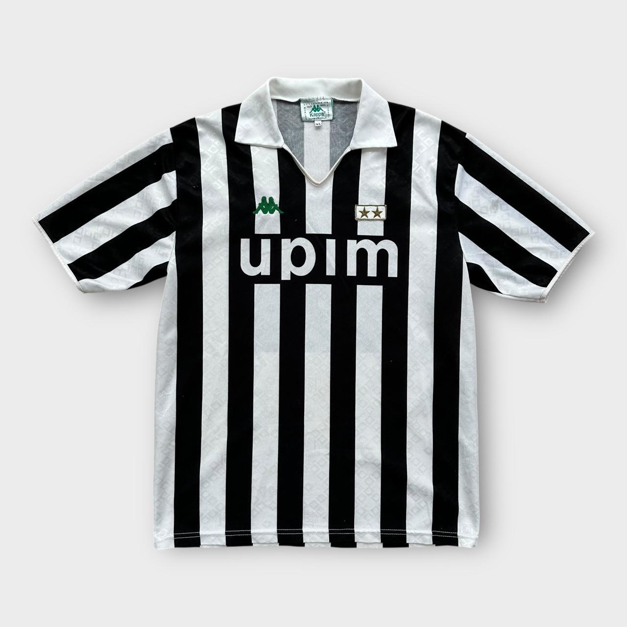 Maillot de football domicile vintage 1991/1992 de la Juventus par Kappa avec logos brodés et sponsor imprimés sur la poitrine