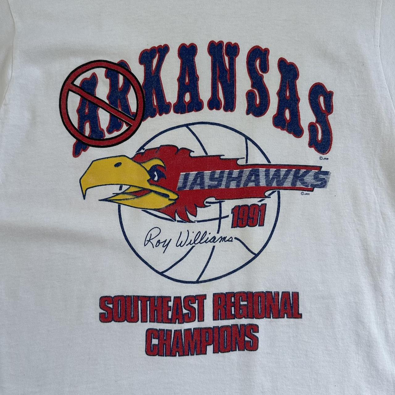 vintage 1991 Kansas basket ball tee-shirt graphique à point unique en blanc
