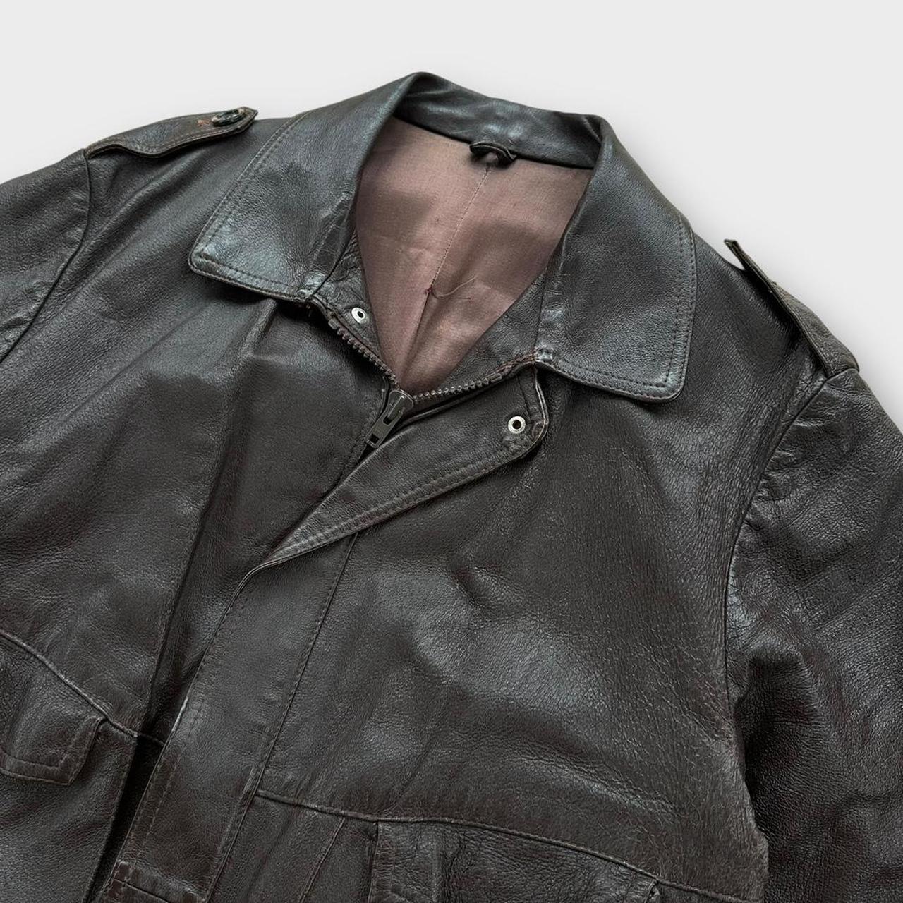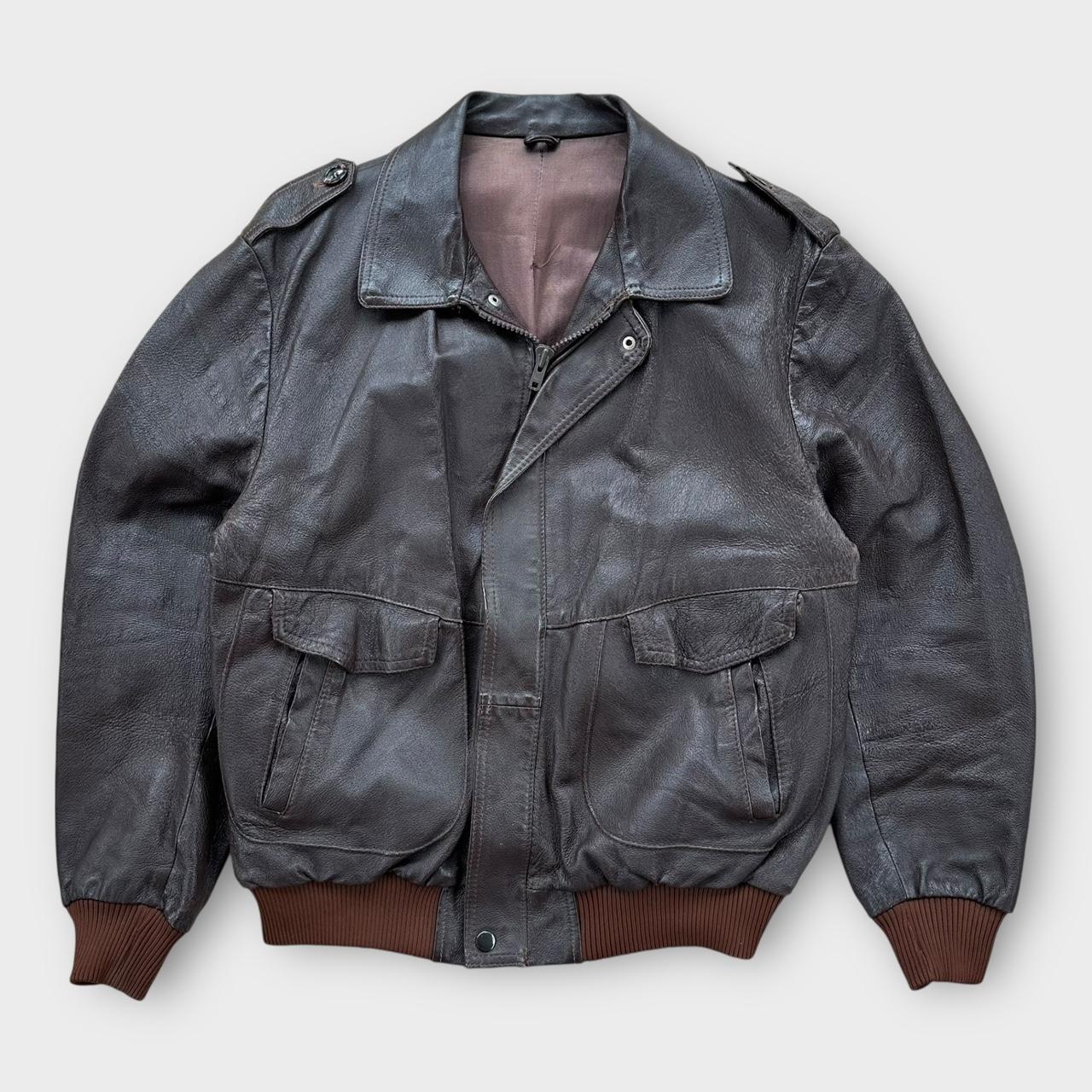 bombardier en cuir, style aviateur, cuir robuste, veste militaire, cuir marron, surdimensionné, vintage années 90, zip-up, veste de vol, silhouette classique