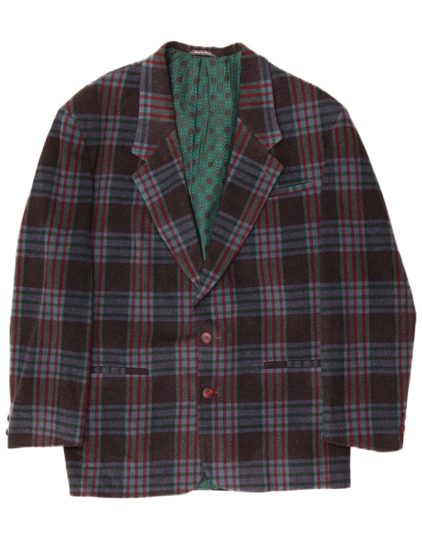 vintage Homme 2 Bouton Blazer Veste IT 48 Moyen Bleu Marine Check Laine