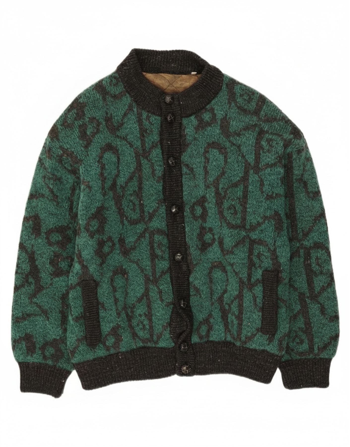 vintage Mens Abstract Pattern Knit Bomber Jacket IT 48 Acrylique Vert Moyen