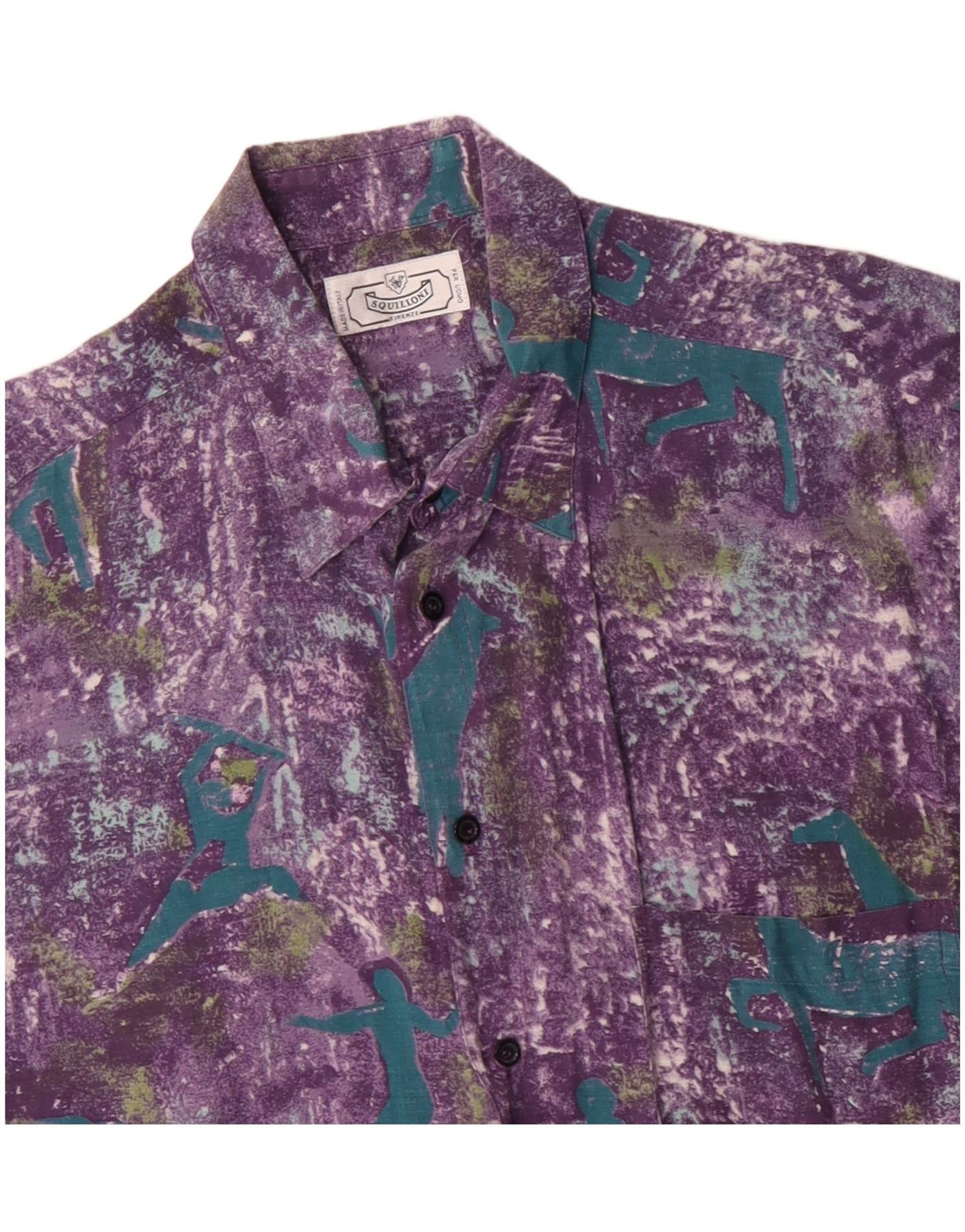 Vintage Homme Motif Abstrait Chemise À Manches Courtes Grande Viscose Violette