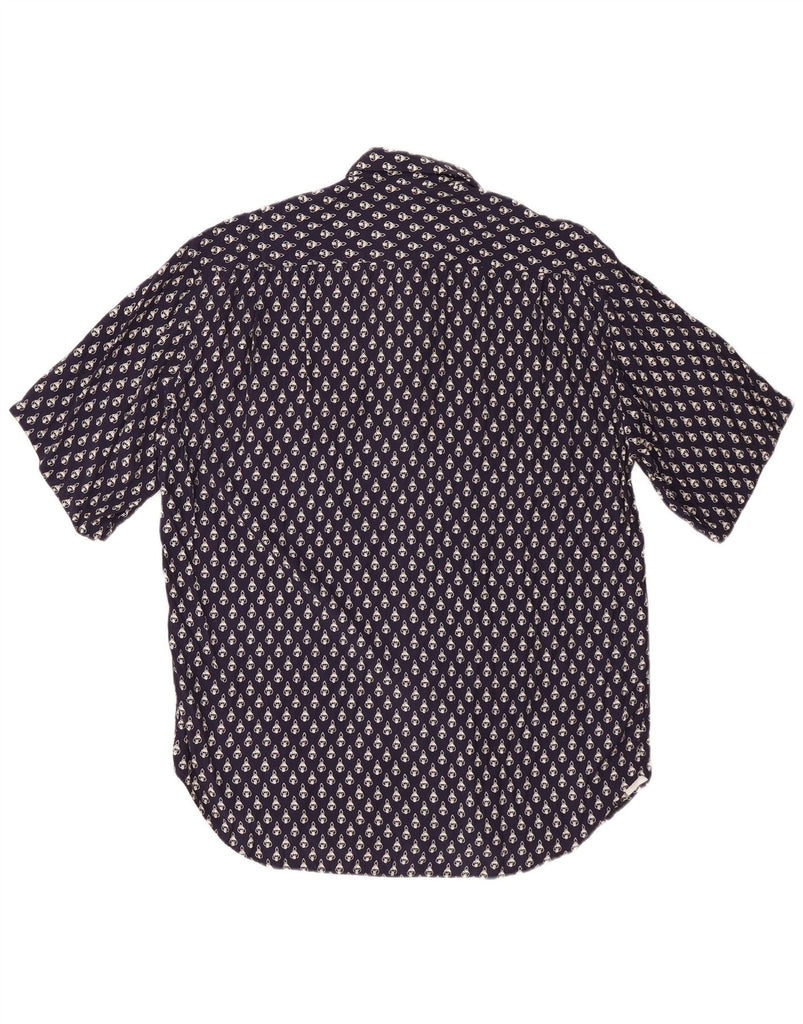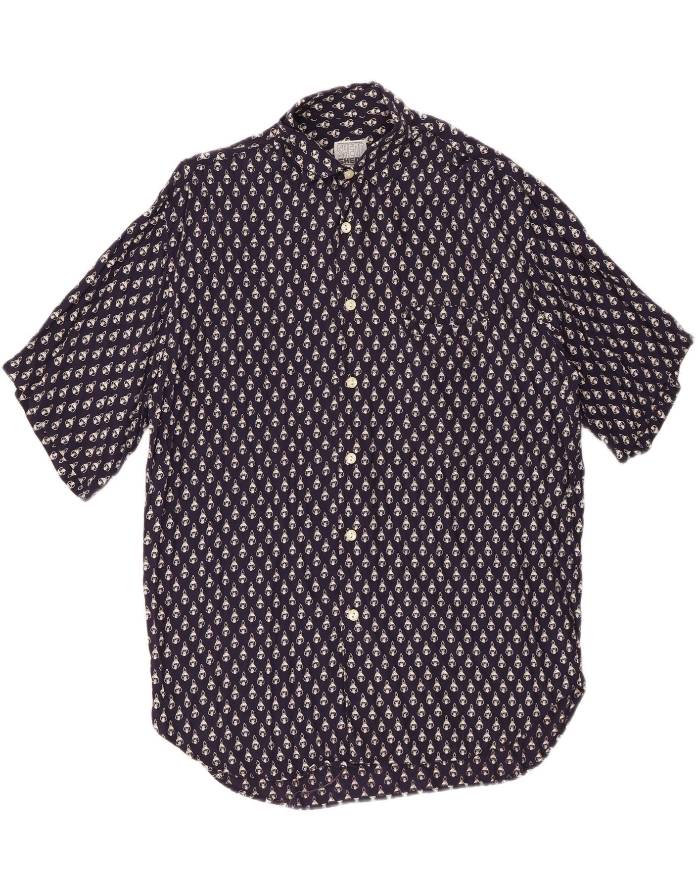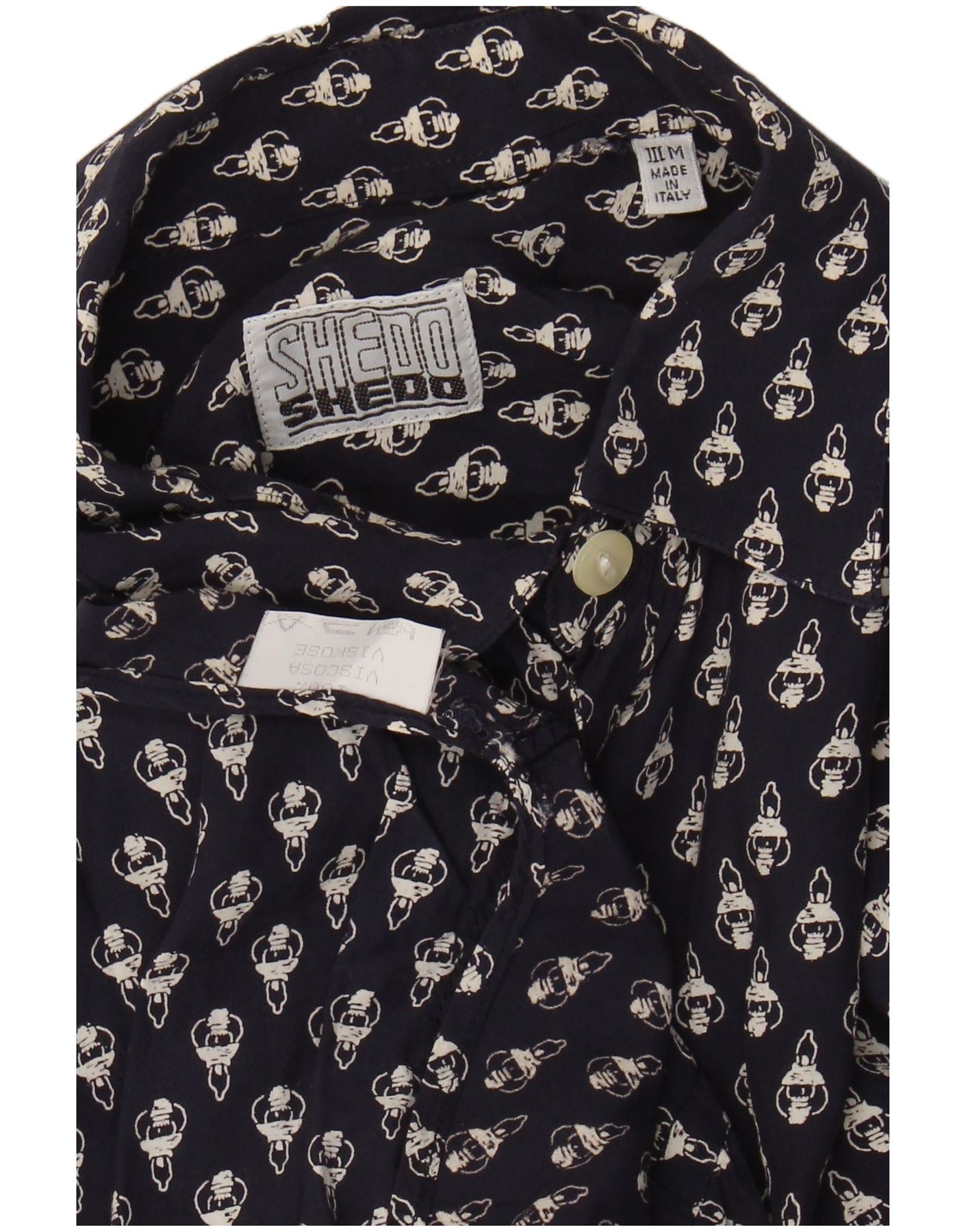 VINTAGE Chemise à manches courtes pour homme à motif abstrait en viscose bleu marine moyen