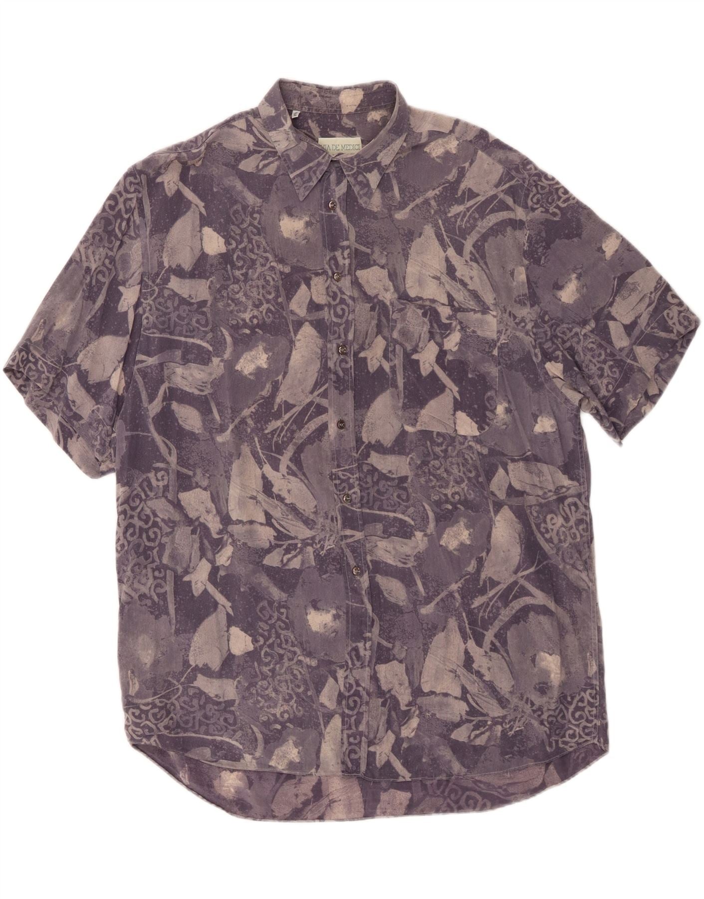 VINTAGE Chemise à manches courtes pour hommes à motif abstrait XL Bleu