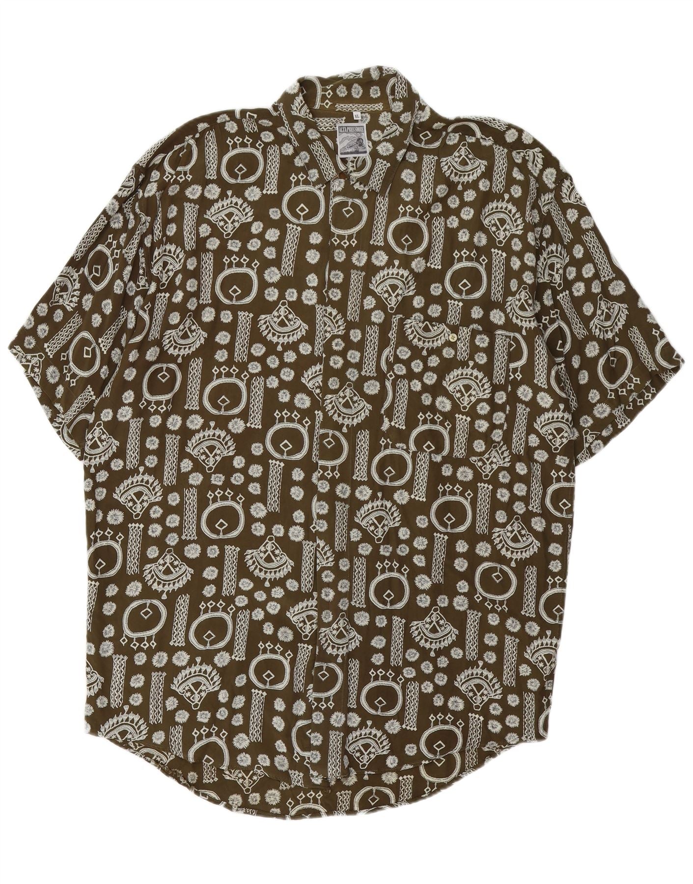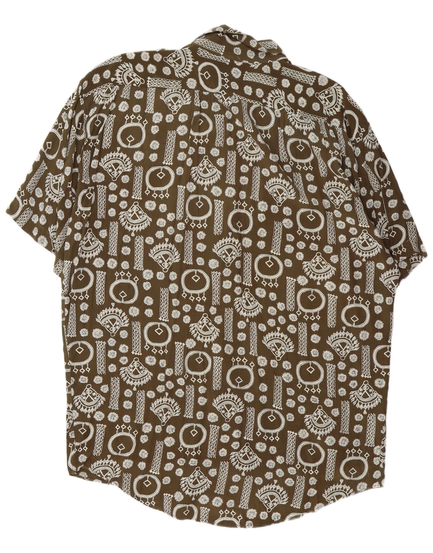 Chemise à manches courtes à motif abstrait vintage pour hommes XL Kaki