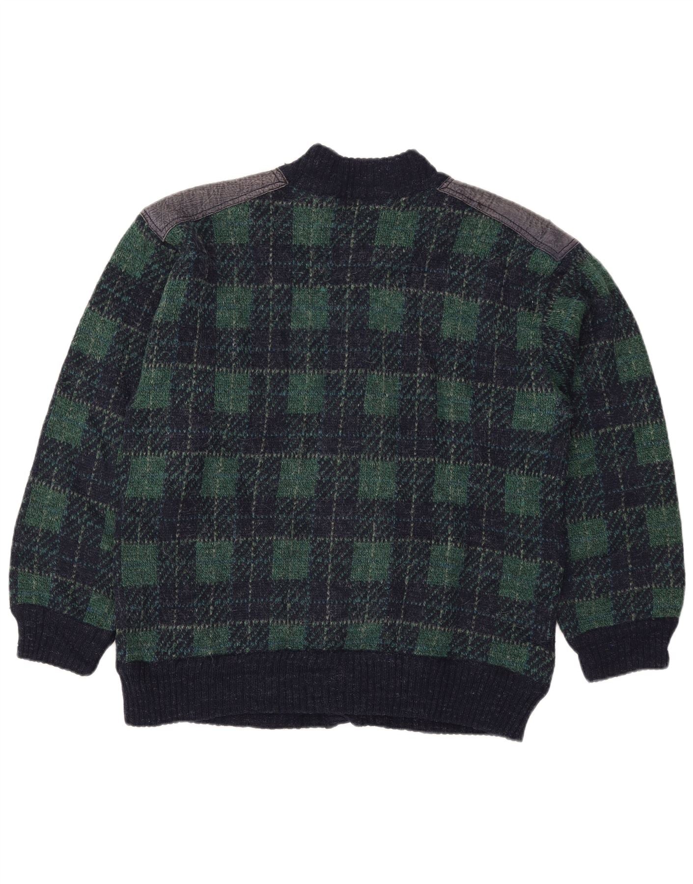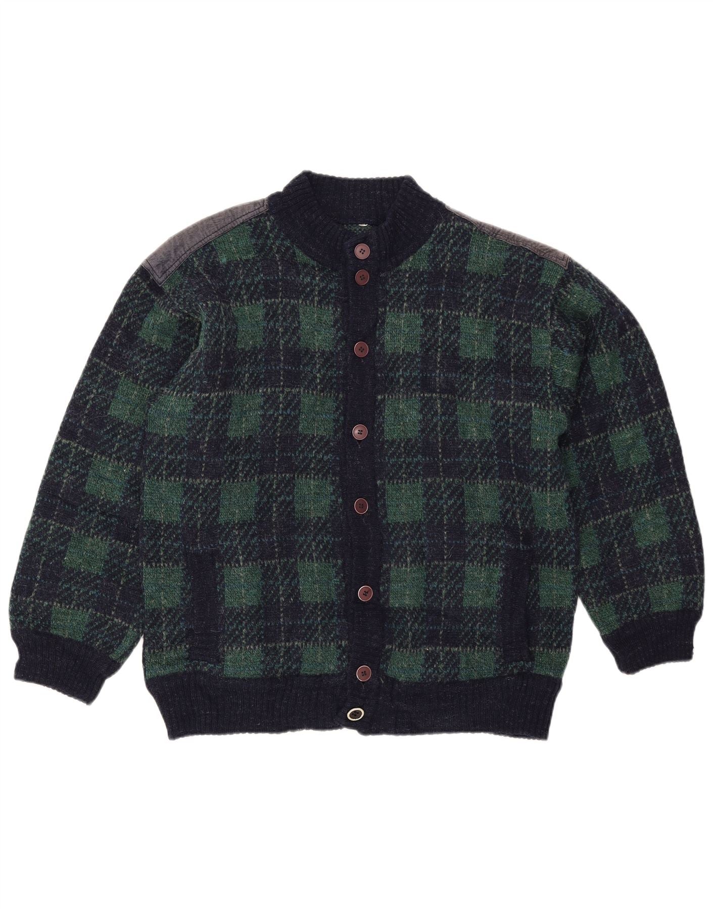 vintage Homme Cardigan Pull IT 54 XL Bleu Marine Check Laine