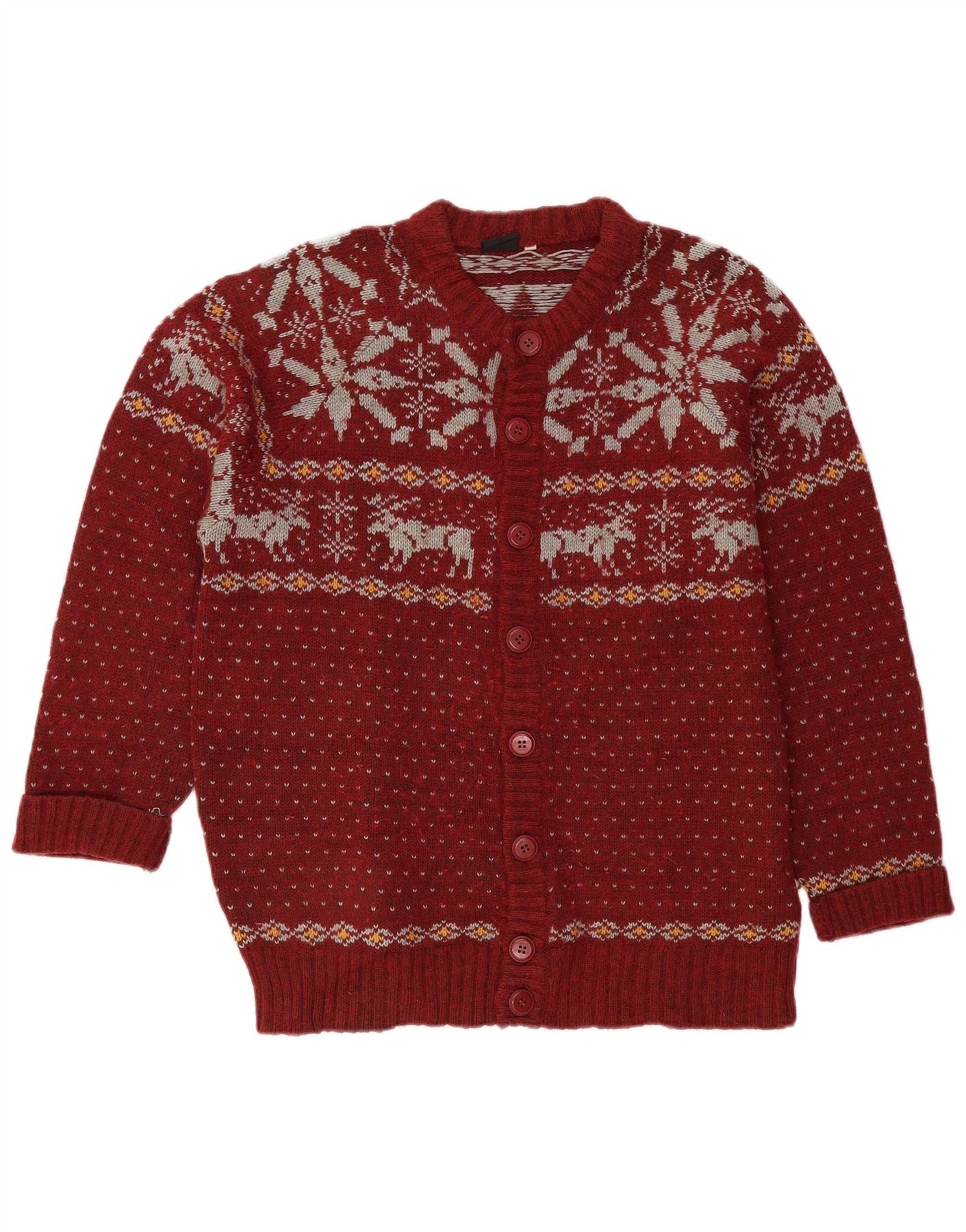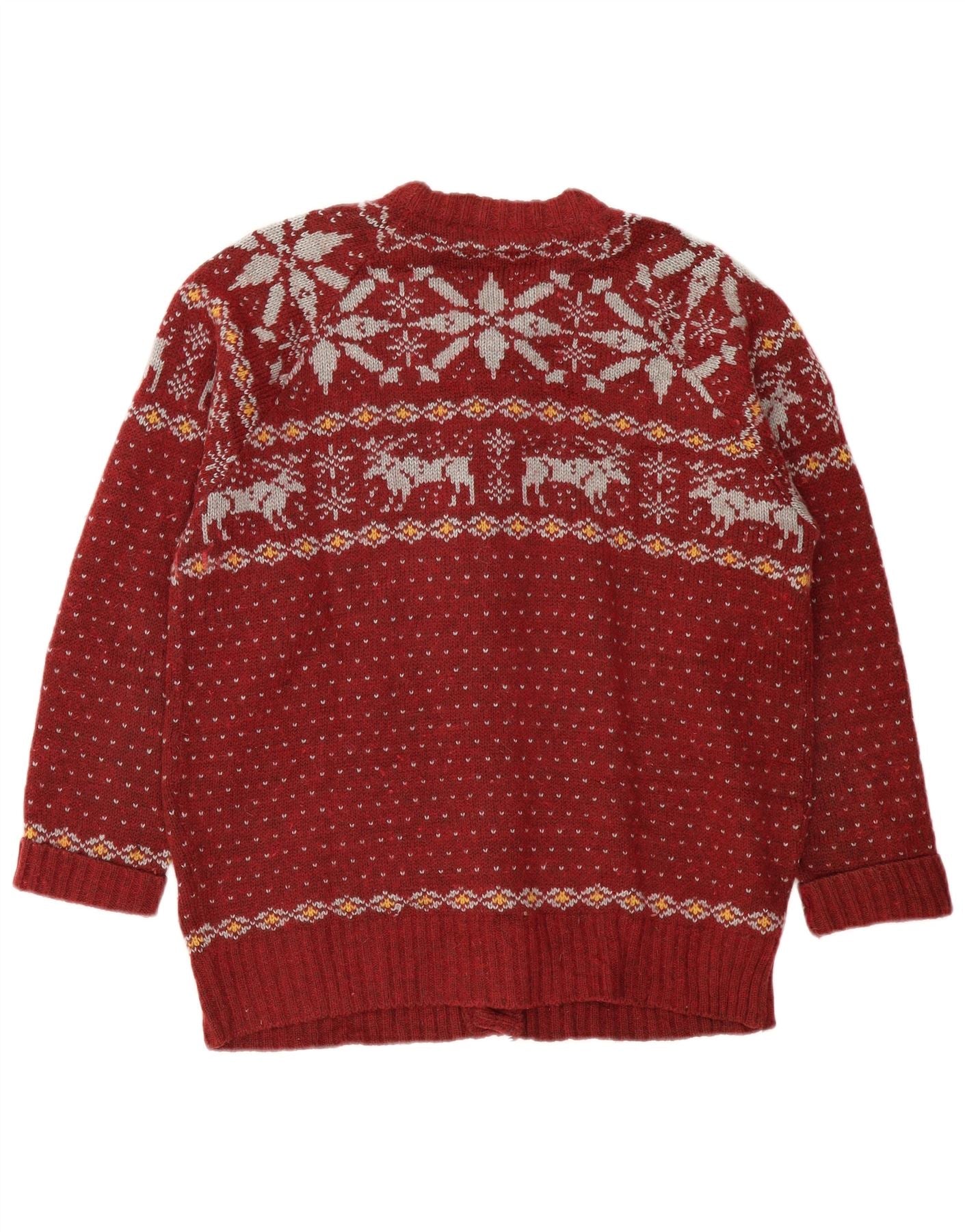 VINTAGE Pull Cardigan Homme Grande Laine Fair Isle Bordeaux