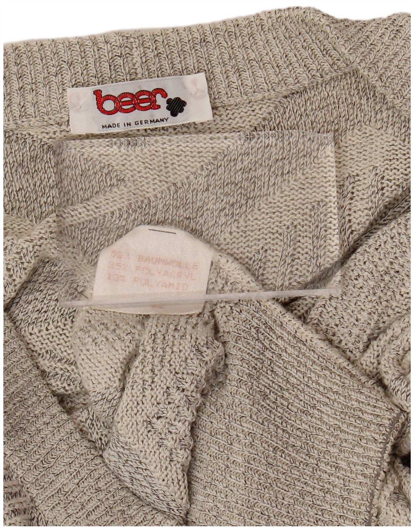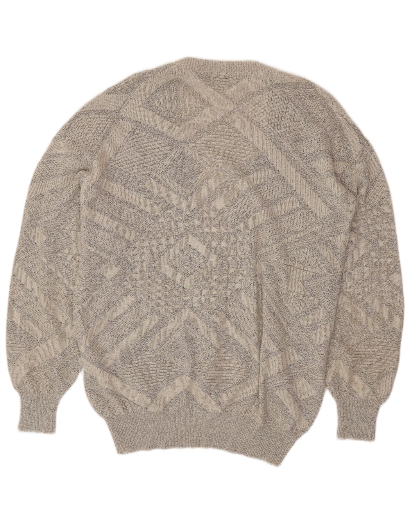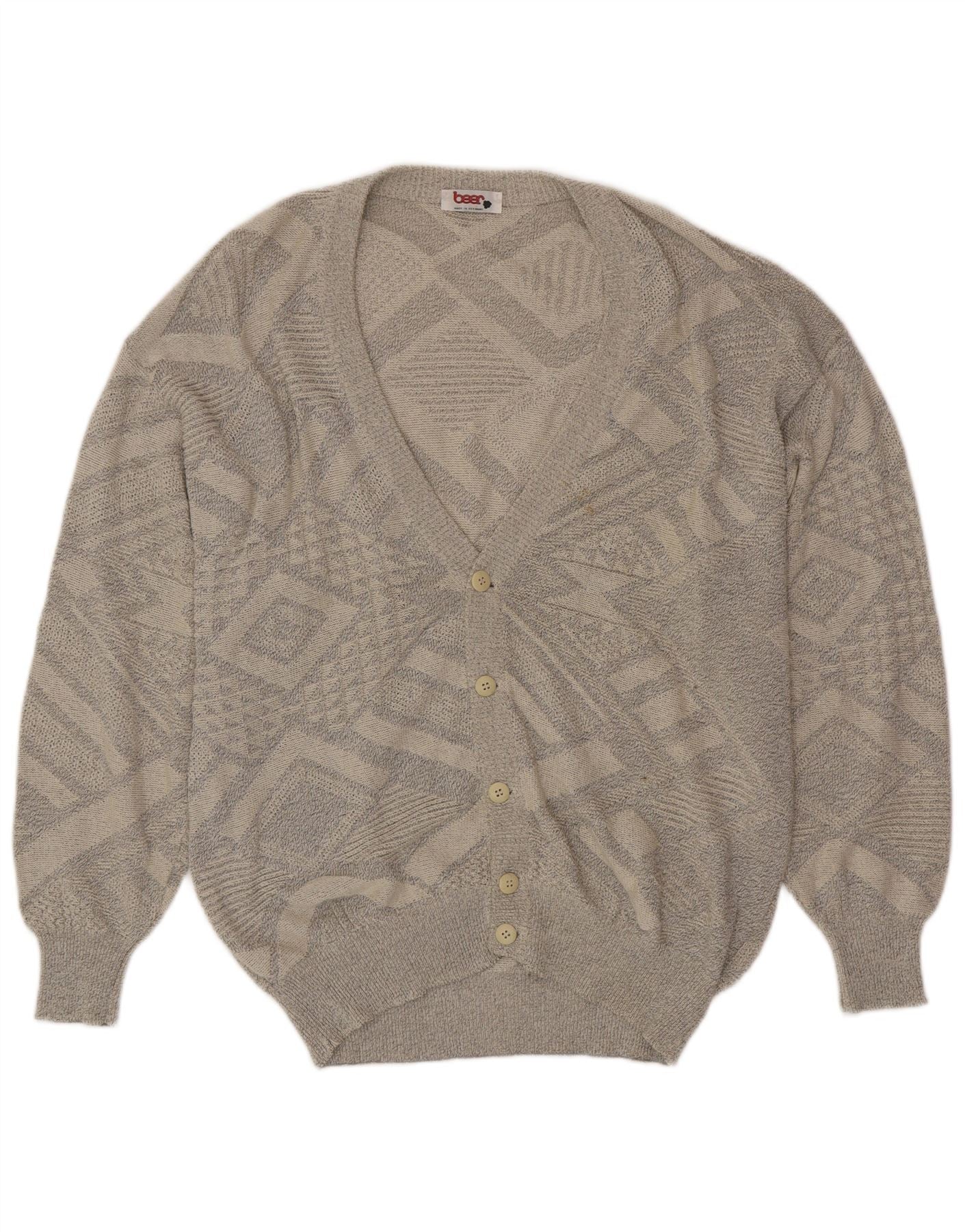 VINTAGE Homme Cardigan Pull Grand Gris Géométrique Coton