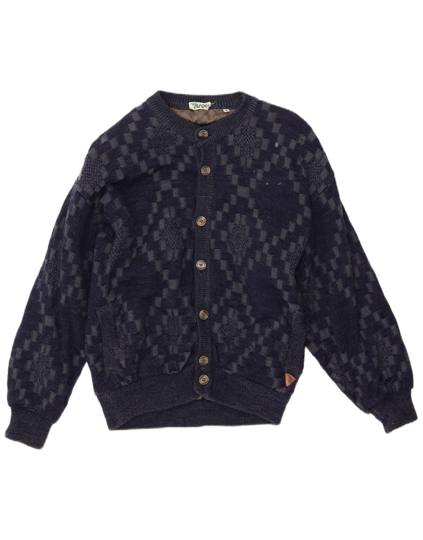 vintage Womens Cardigan Sweater UK 18 XL Laine géométrique multicolore
