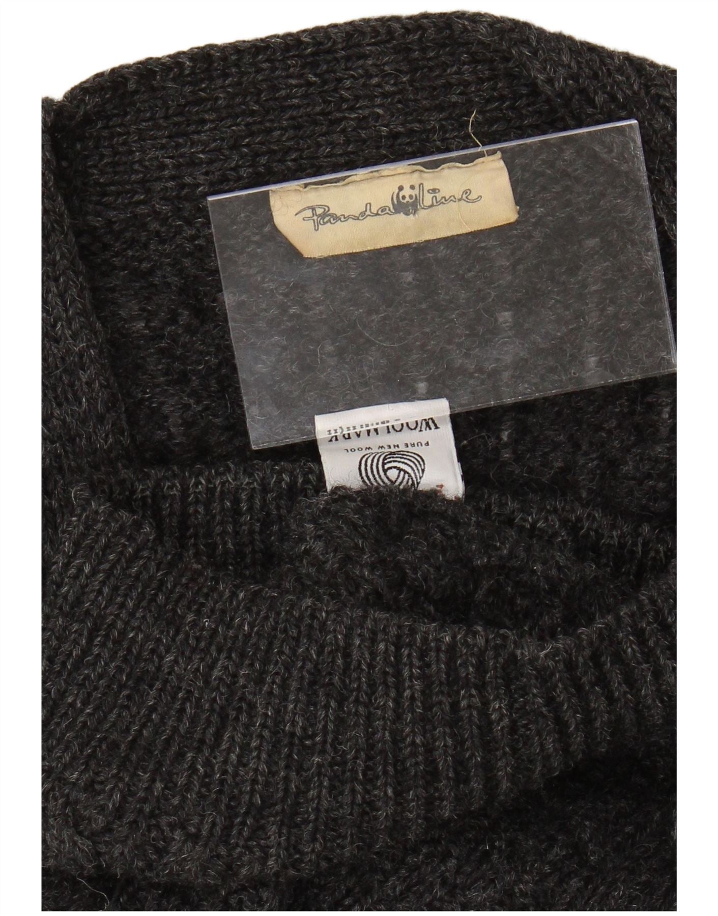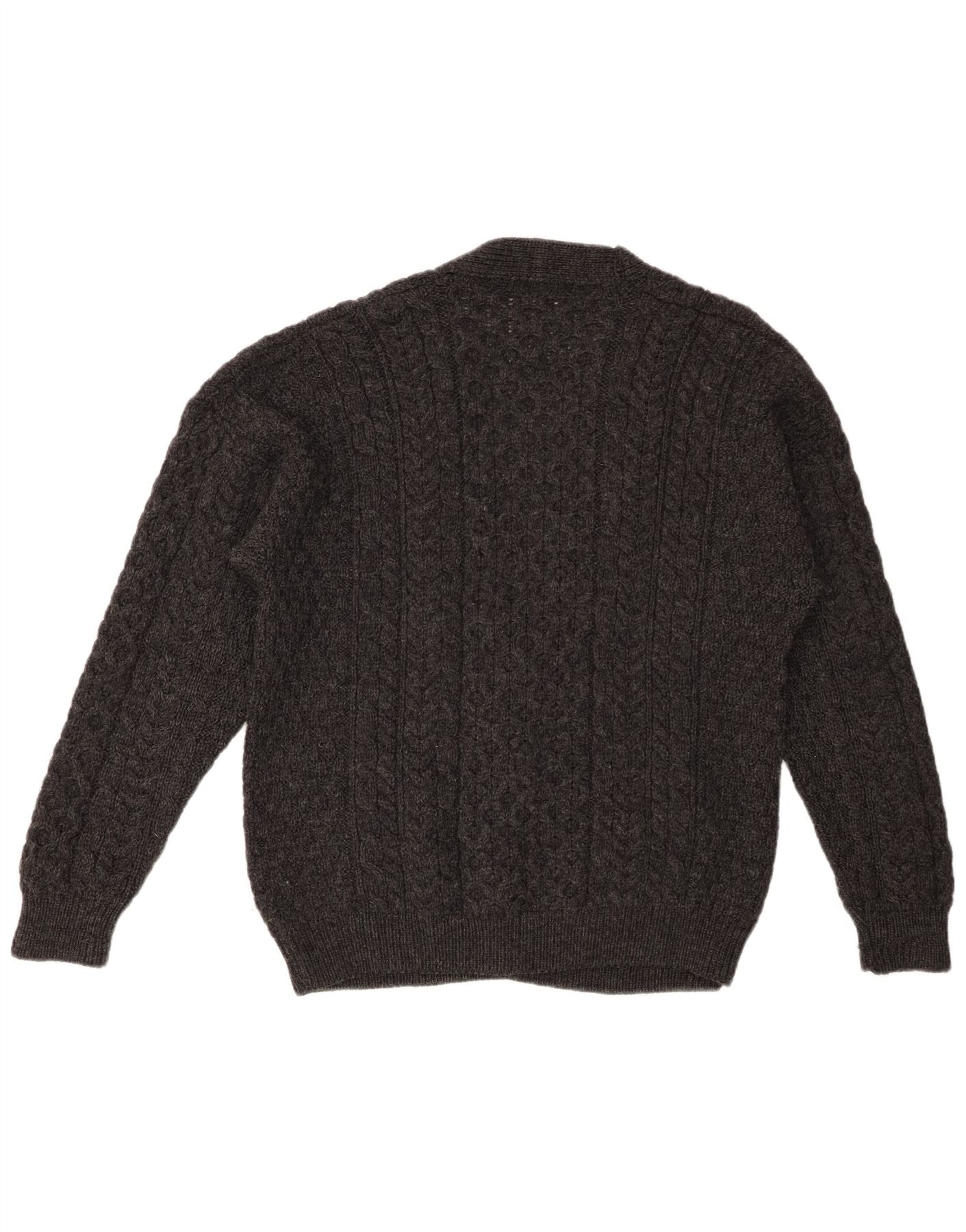 VINTAGE Pull Cardigan Homme Gris Moyen Laine Vierge