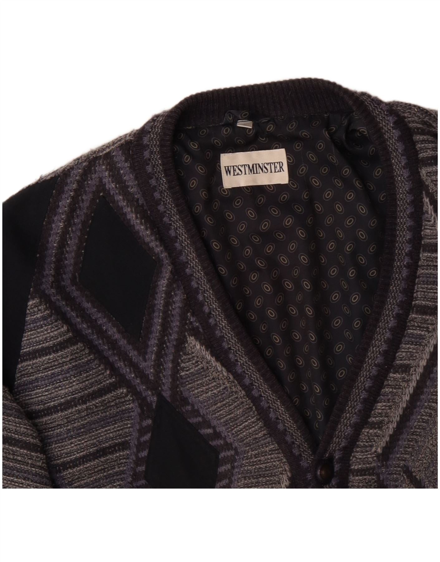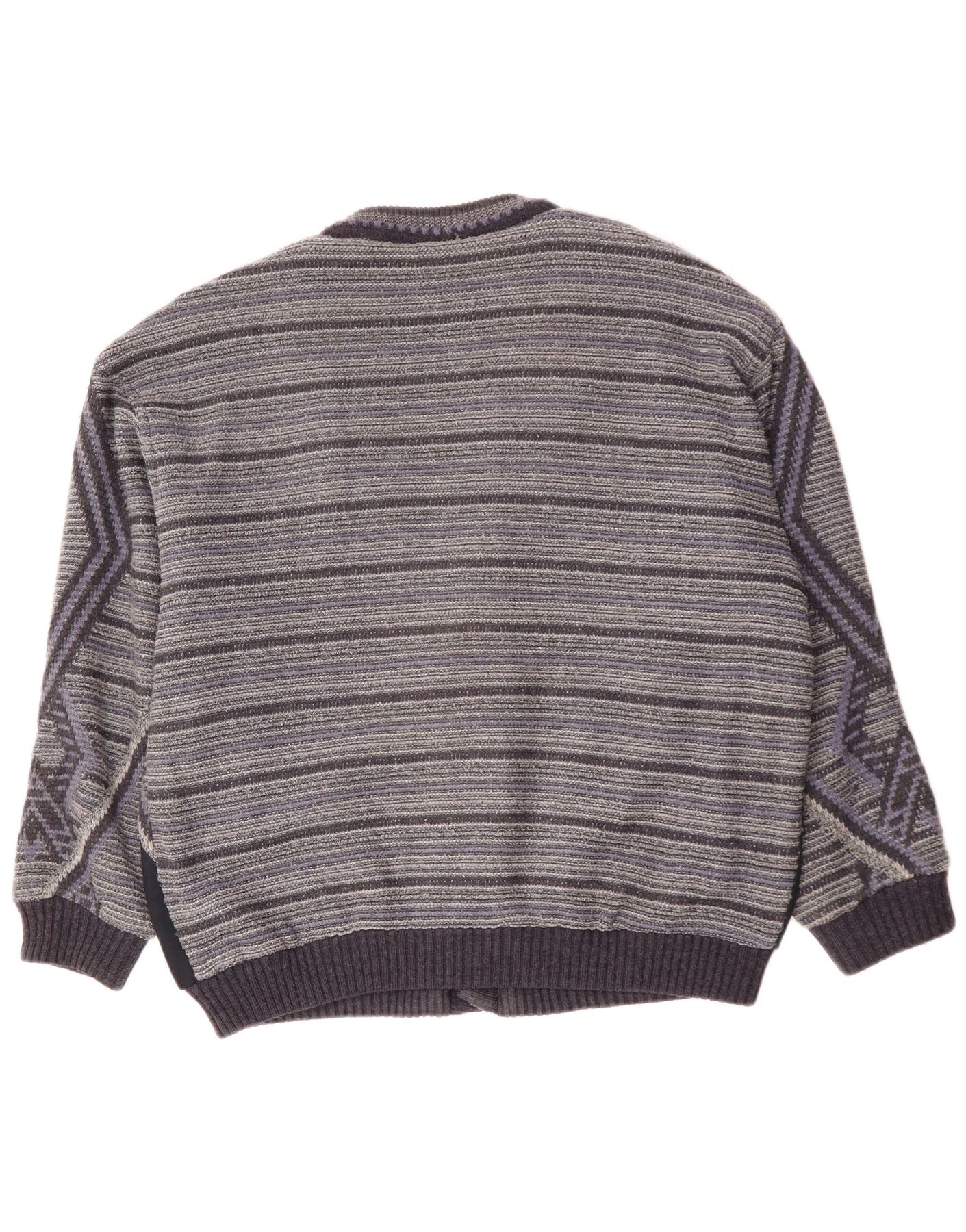 VINTAGE Homme Cardigan Pull XL Gris Géométrique Acrylique