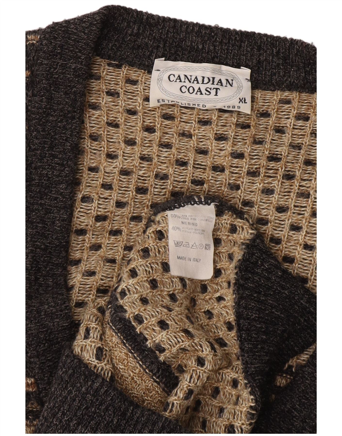 VINTAGE Homme Cardigan Pull XL Gris Rayé Laine