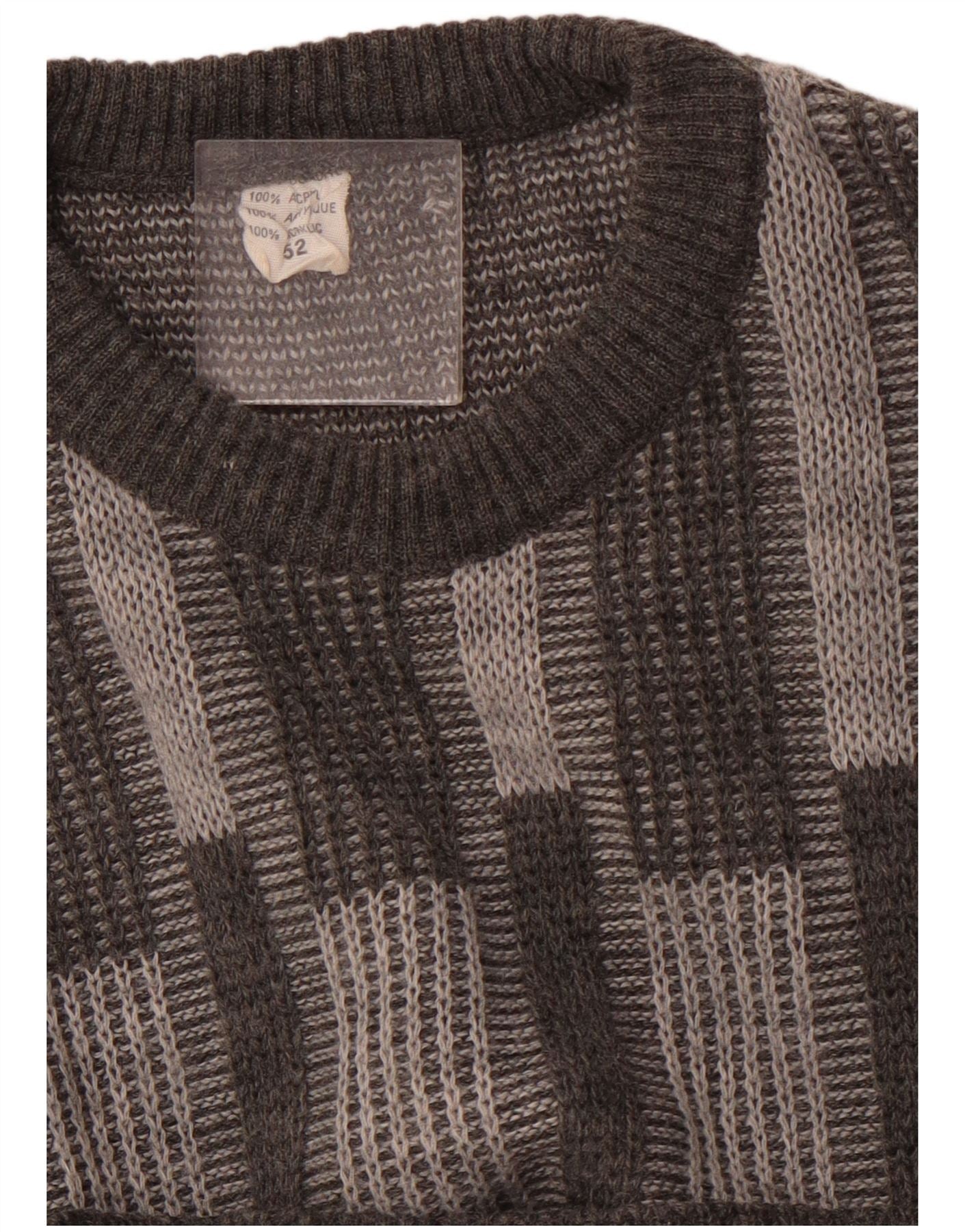 VINTAGE Mens Crew Neck Jumper Sweater IT 52 Grand Acrylique Géométrique Gris