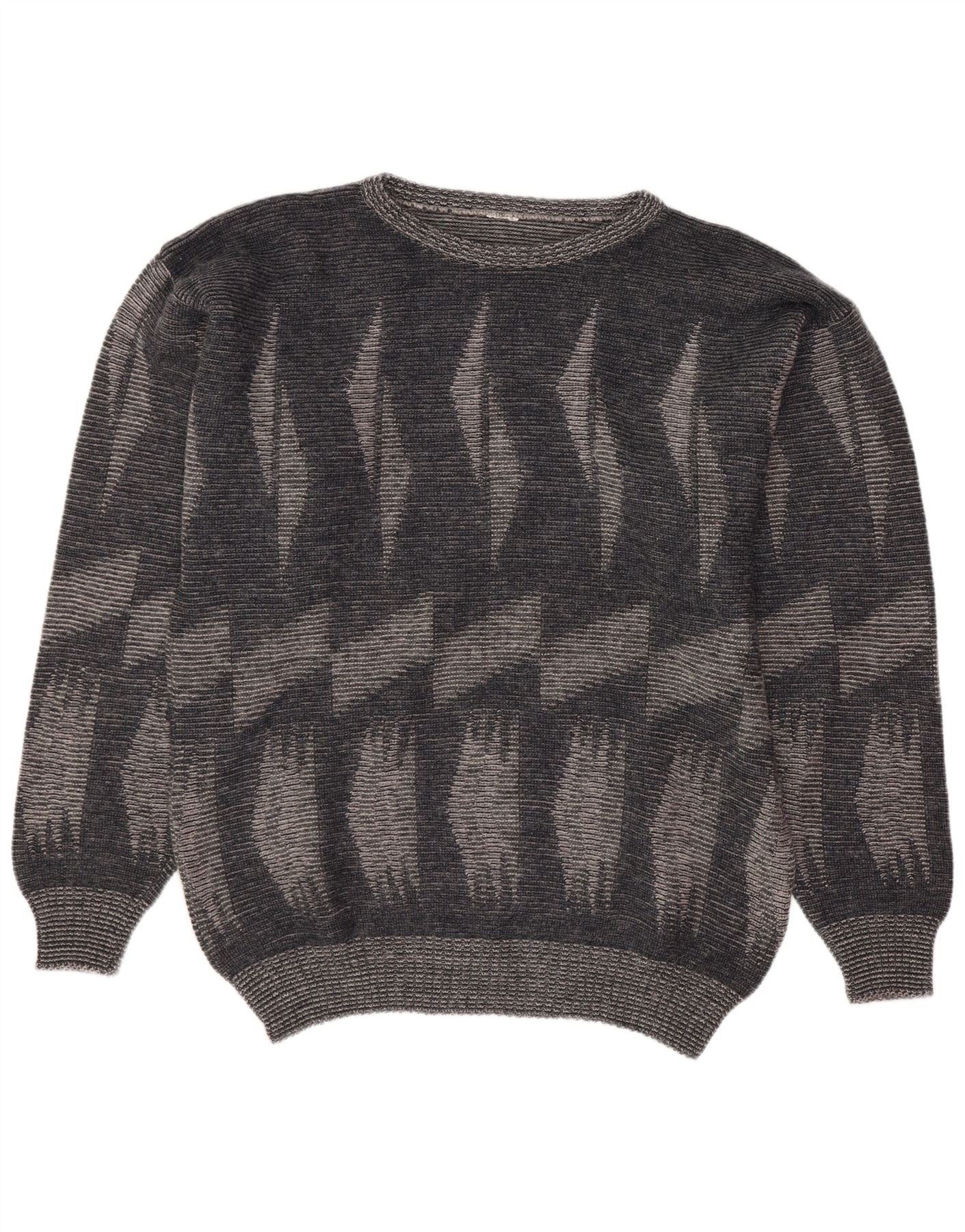 vintage Mens Crew Neck Jumper Pull Grand Gris Géométrique