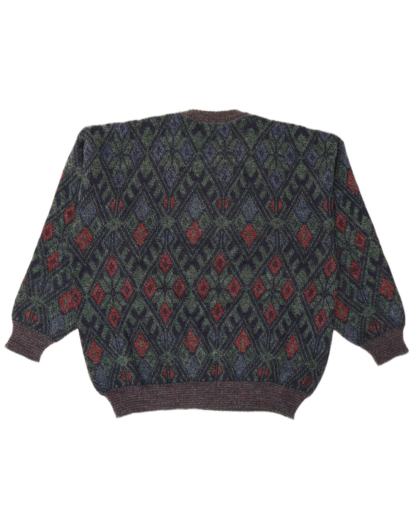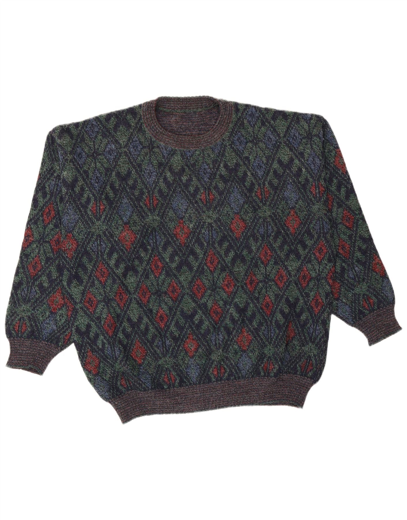VINTAGE Pull col rond homme grand bleu marine Argyle/diamant