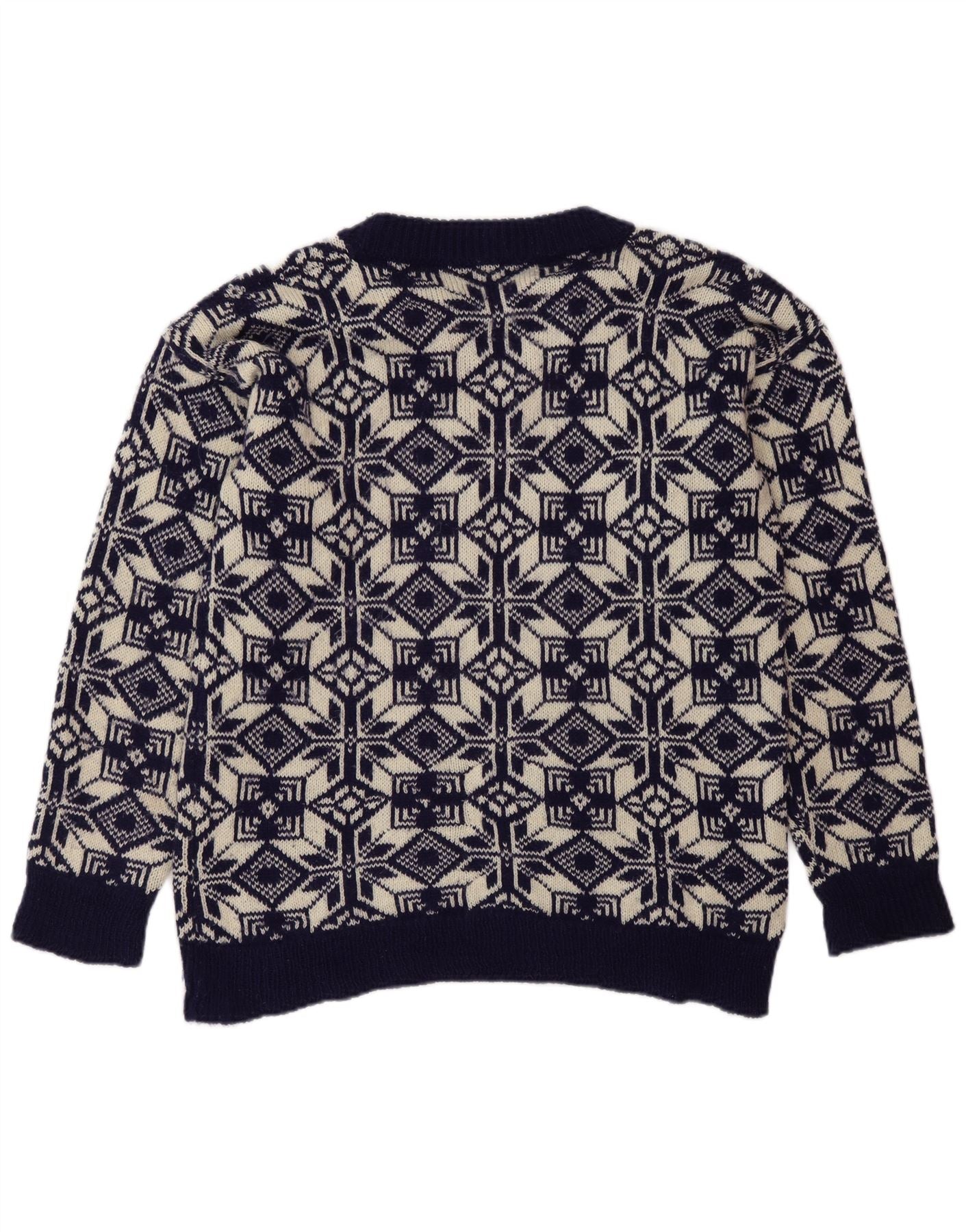 vintage Mens Crew Neck Jumper Pull Moyen Bleu Marine Fair Isle