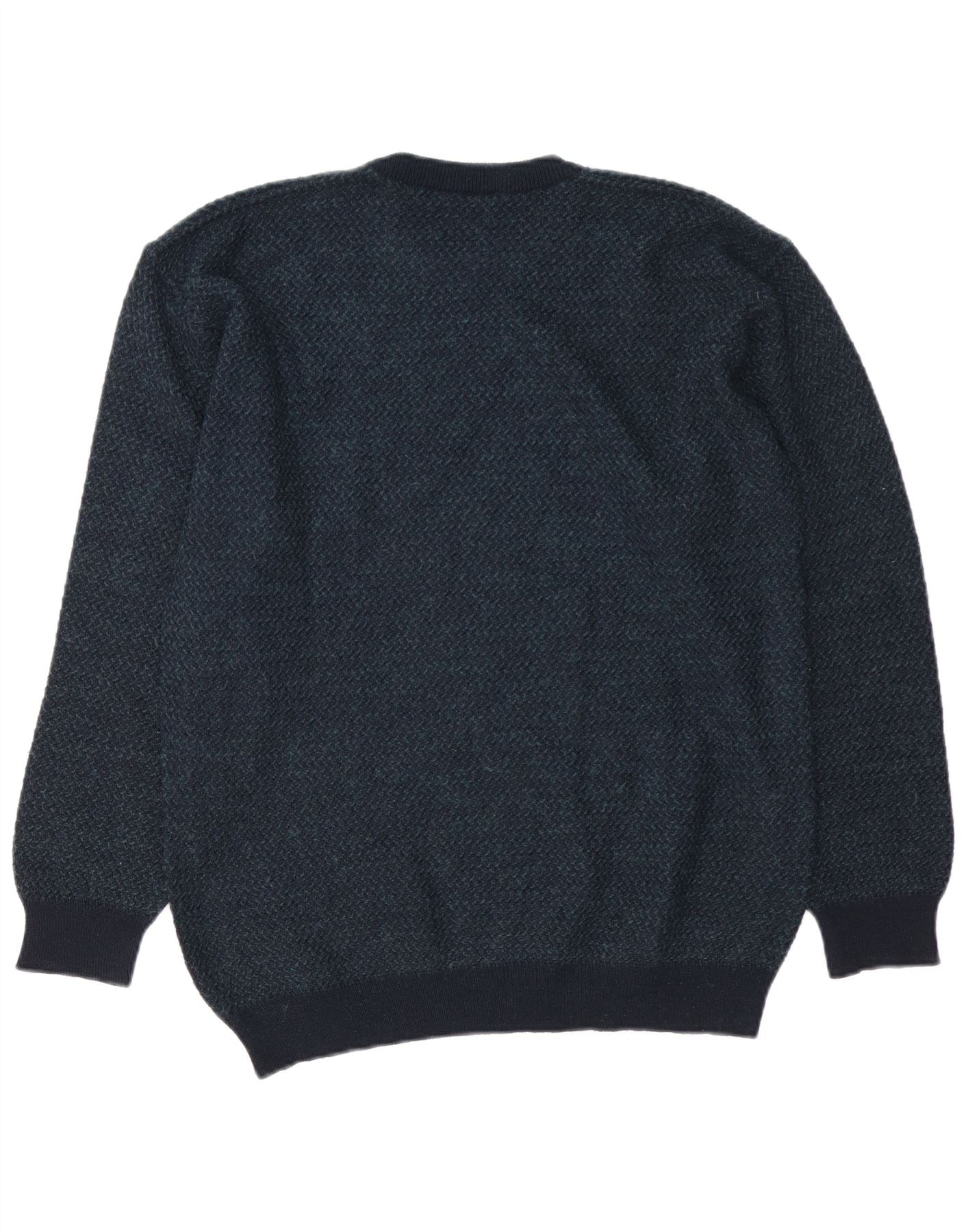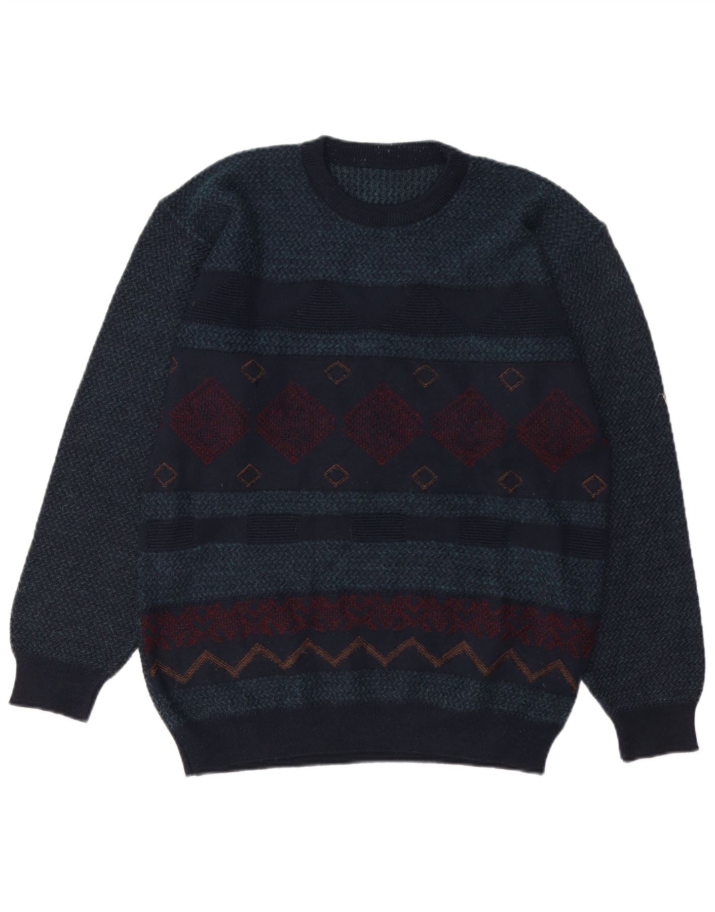 VINTAGE Pull col rond homme bleu marine moyen géométrique