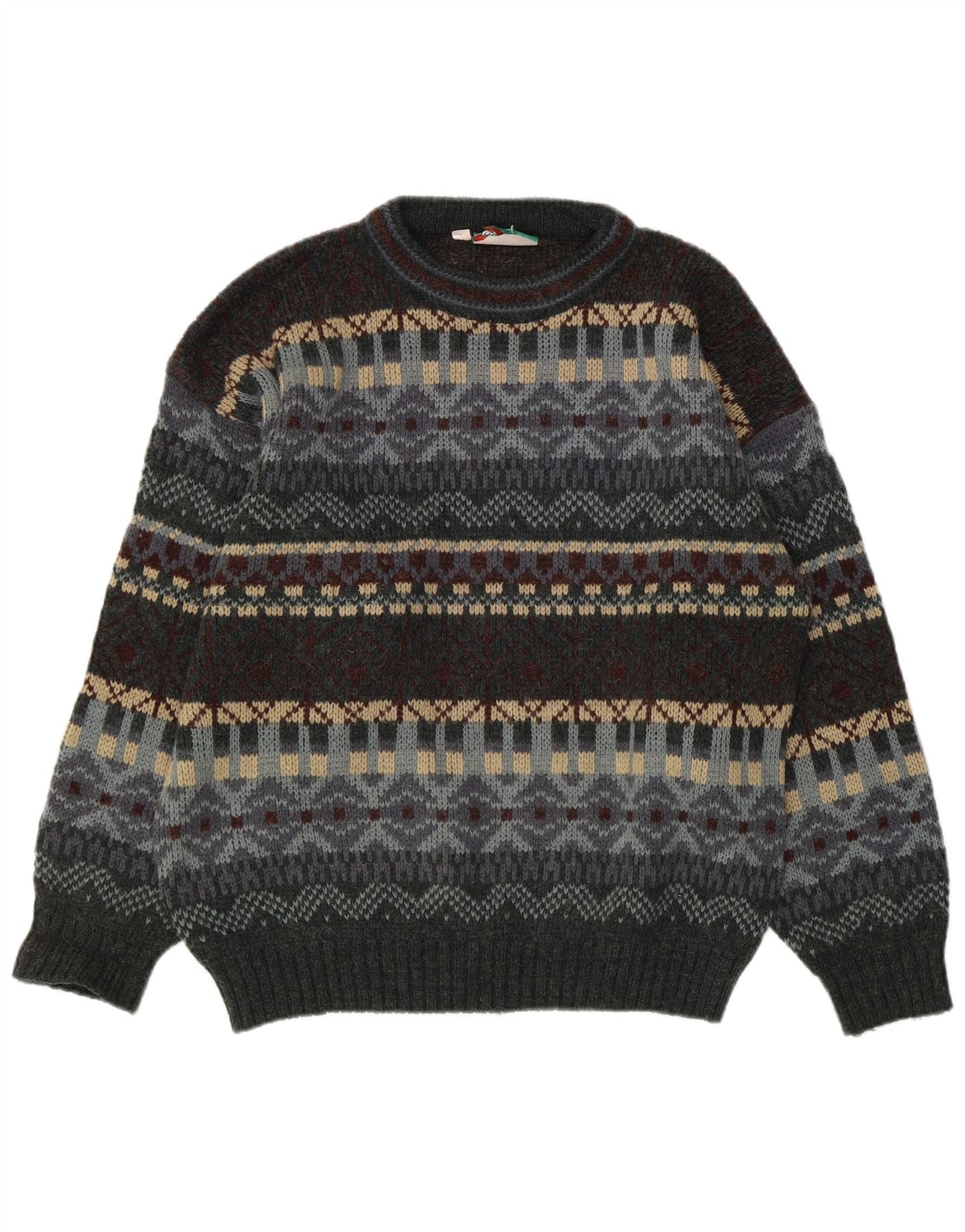 vintage Mens Crew Neck Jumper Pull UK 38/40 Gris Moyen Fair Isle