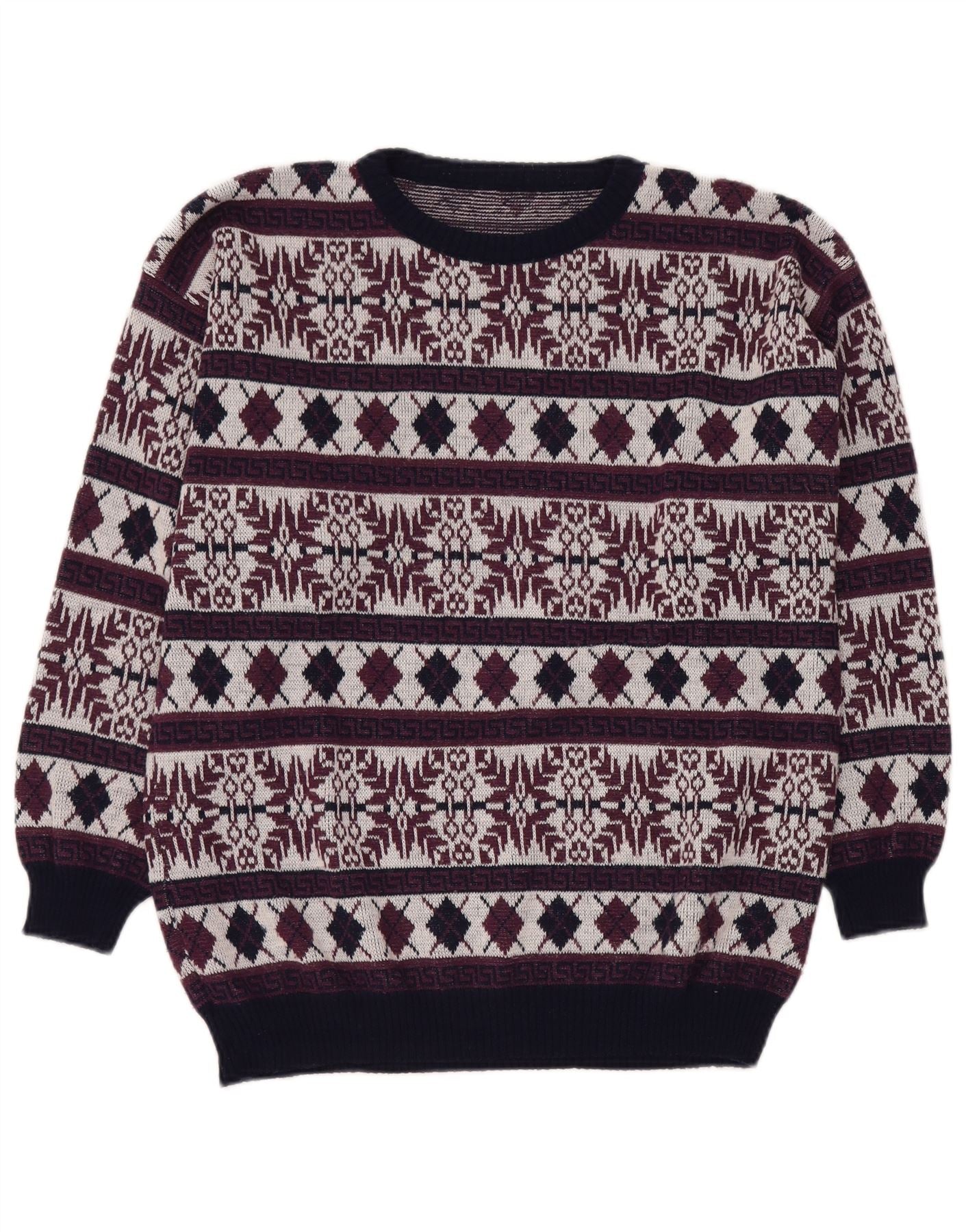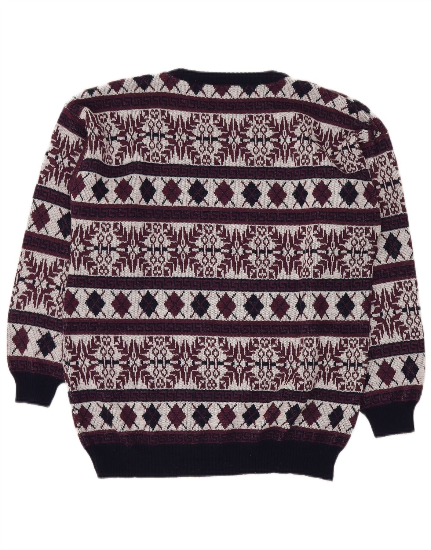 VINTAGE Pull ras du cou pour homme UK 40 Medium Burgundy Fair Isle