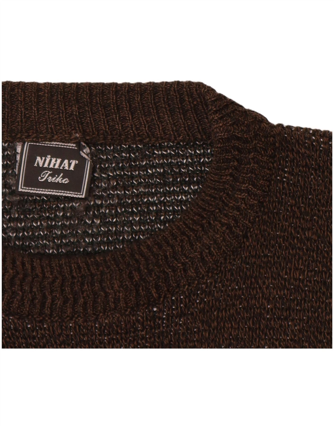 VINTAGE Pull à col rond pour homme XL Marron Colorblock Acrylique