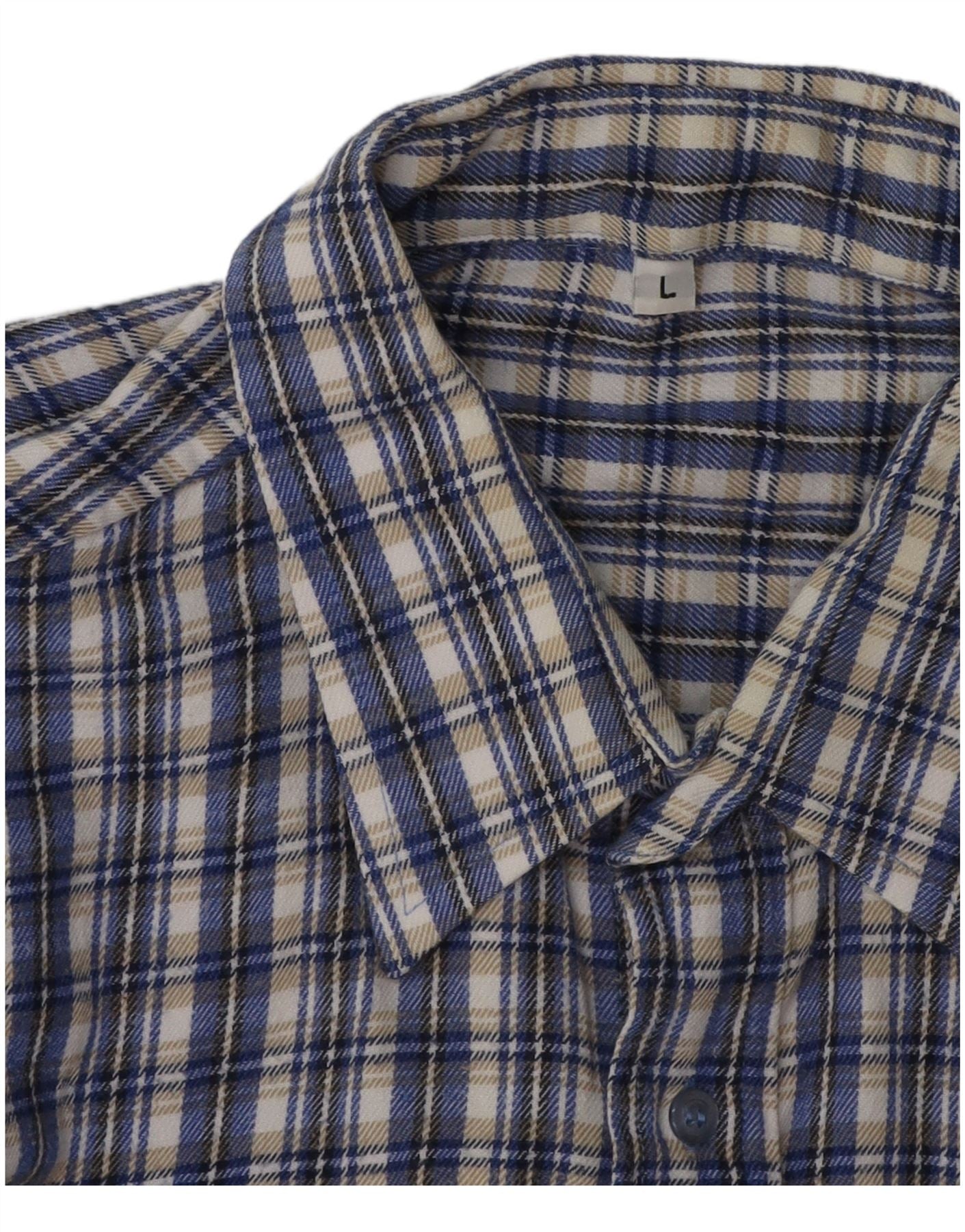 VINTAGE Chemise en flanelle pour homme à grands carreaux bleus