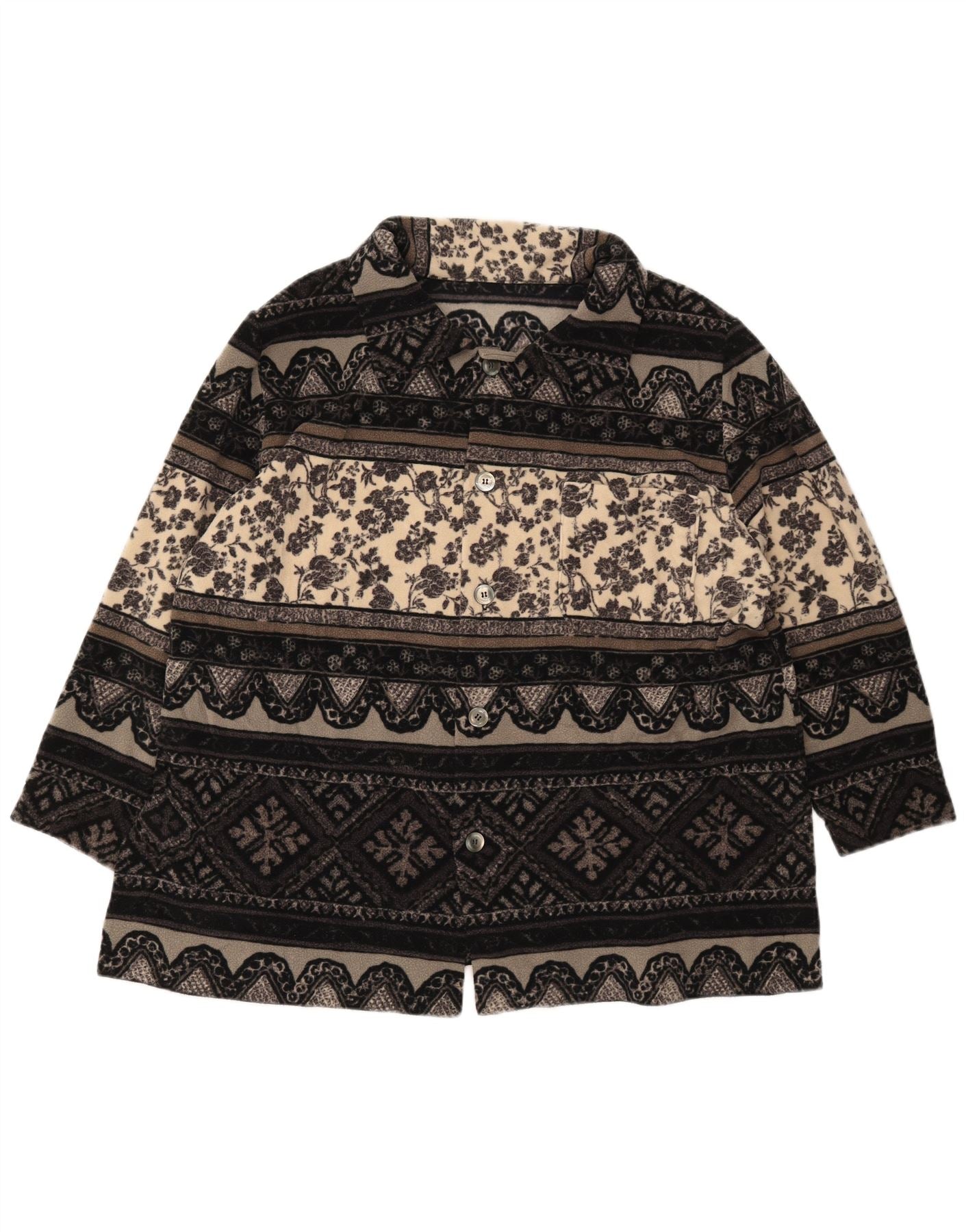 - Description de l'IA : Cette chemise Vintage pour homme est confectionnée à partir d'un tissu tissé mélangé. Il présente un motif patchwork multicolore avec des motifs abstraits en noir, beige et blanc cassé. L'encolure et les manches longues offrent une silhouette classique. Un devant boutonné offre une fermeture traditionnelle. La coupe régulière assure un port confortable. Les motifs complexes créent un style rétro distinctif.