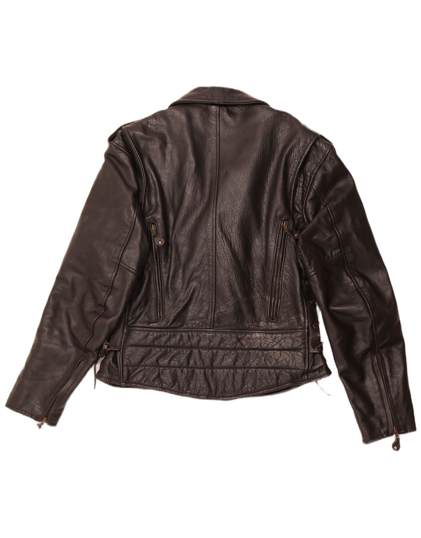 VINTAGE Veste motard en cuir pour homme UK 36 Petit Noir