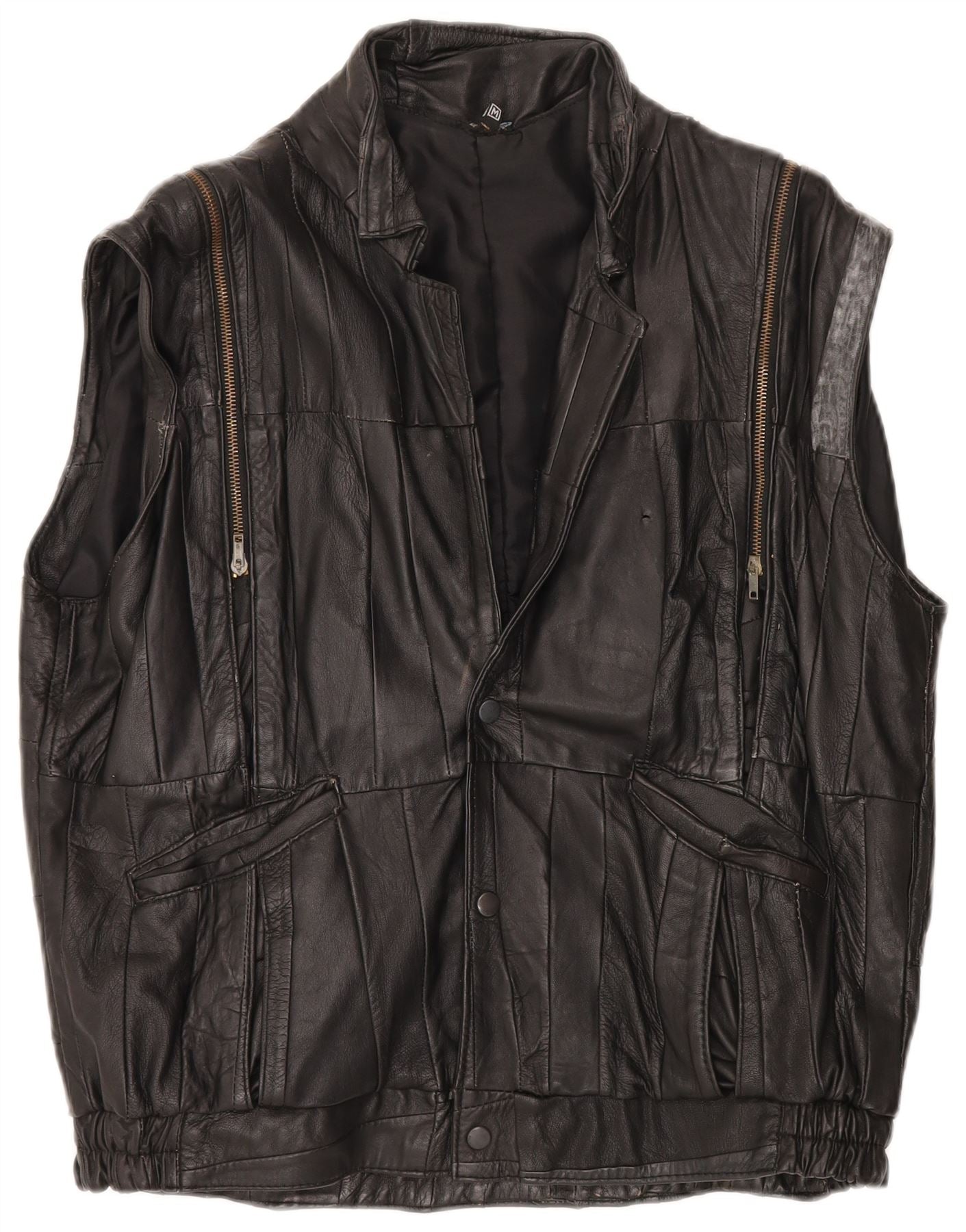 VINTAGE Gilet en cuir homme UK 38 Medium Black Patchwork