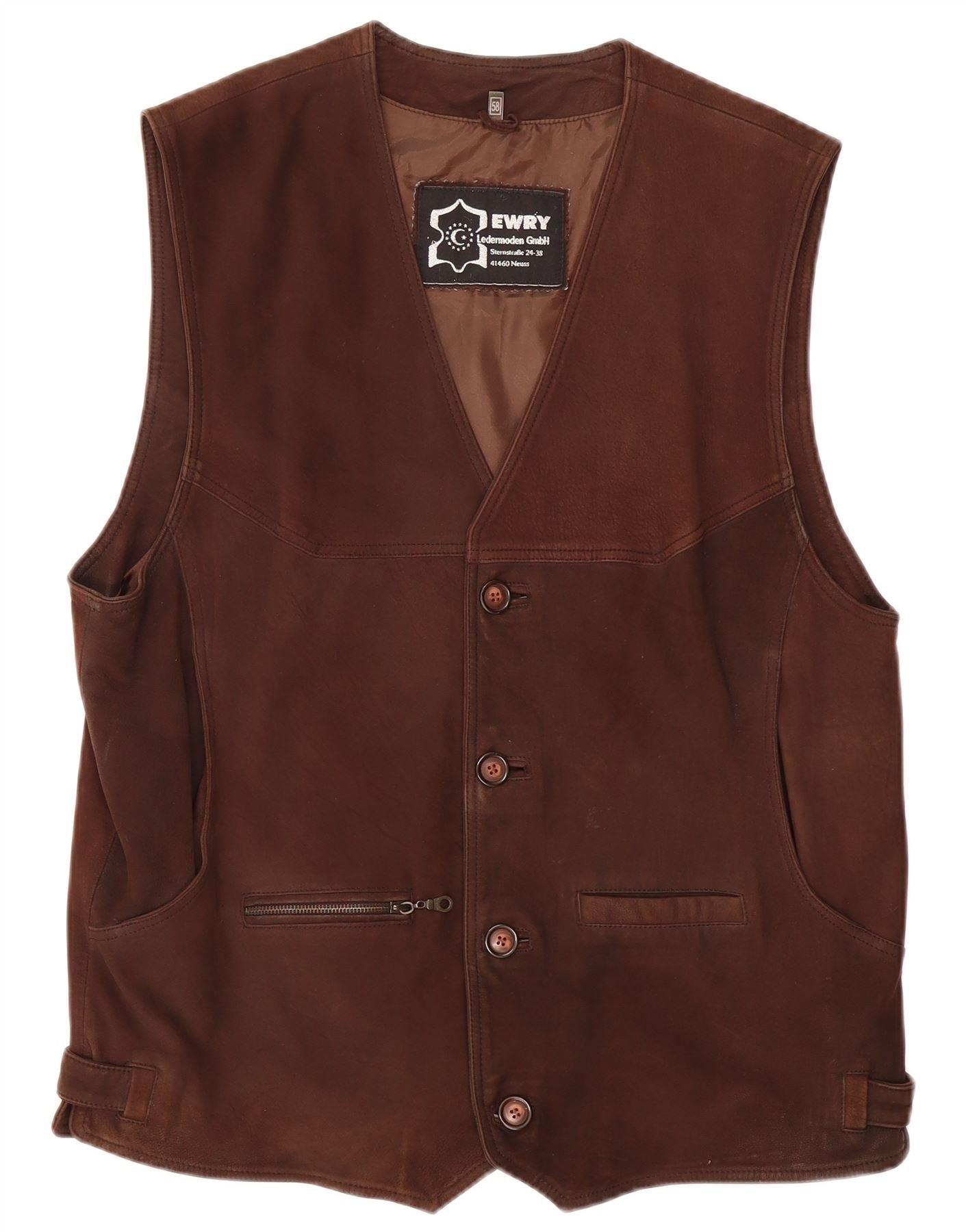 VINTAGE Gilet en cuir homme UK 40 Grand cuir marron
