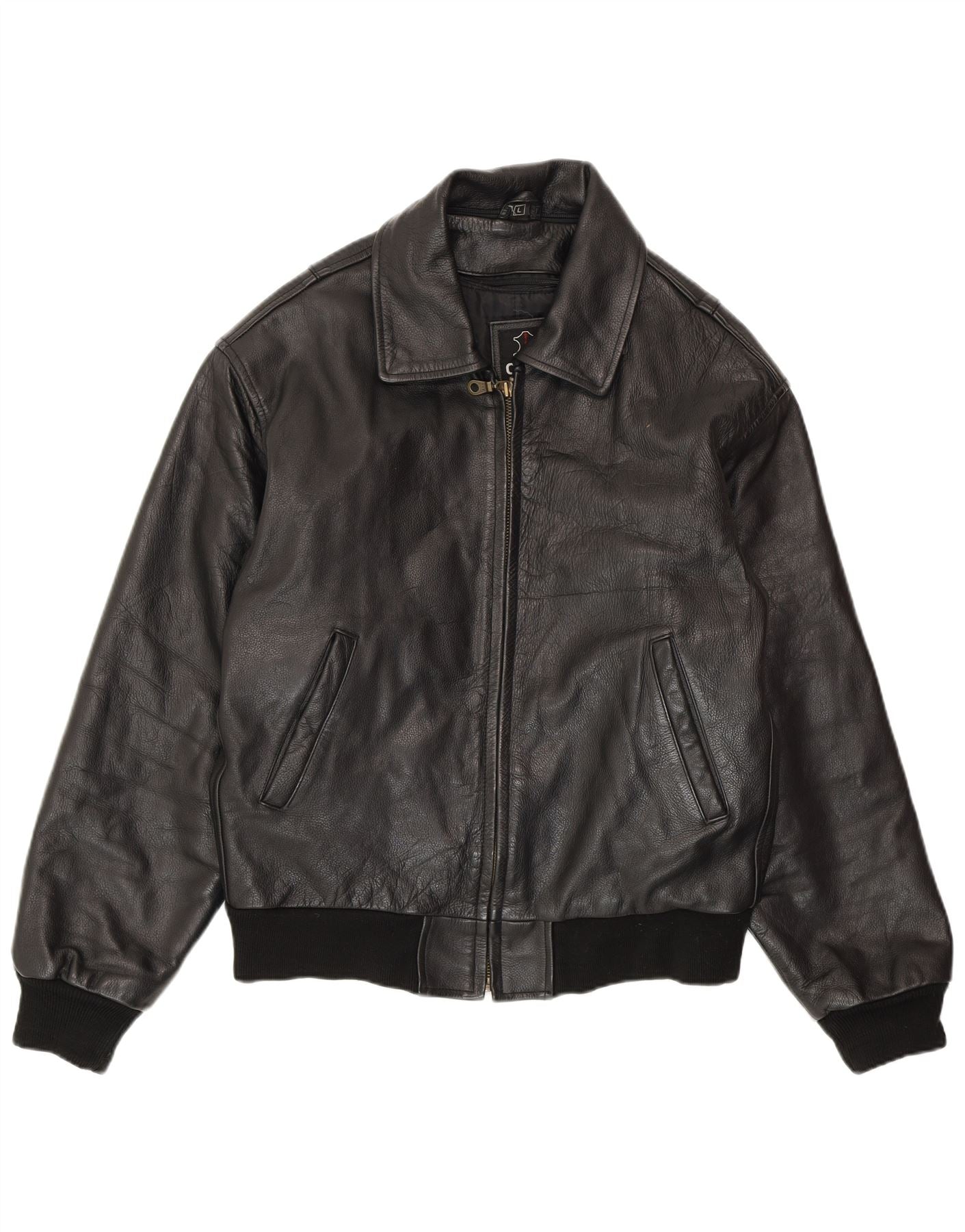 VINTAGE Veste en cuir homme UK 40 Grand cuir noir