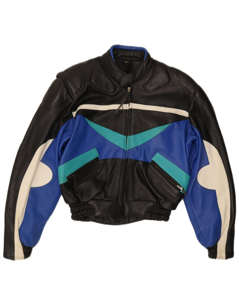 VINTAGE Veste de course en cuir pour homme IT 52 XL Cuir colorblock noir
