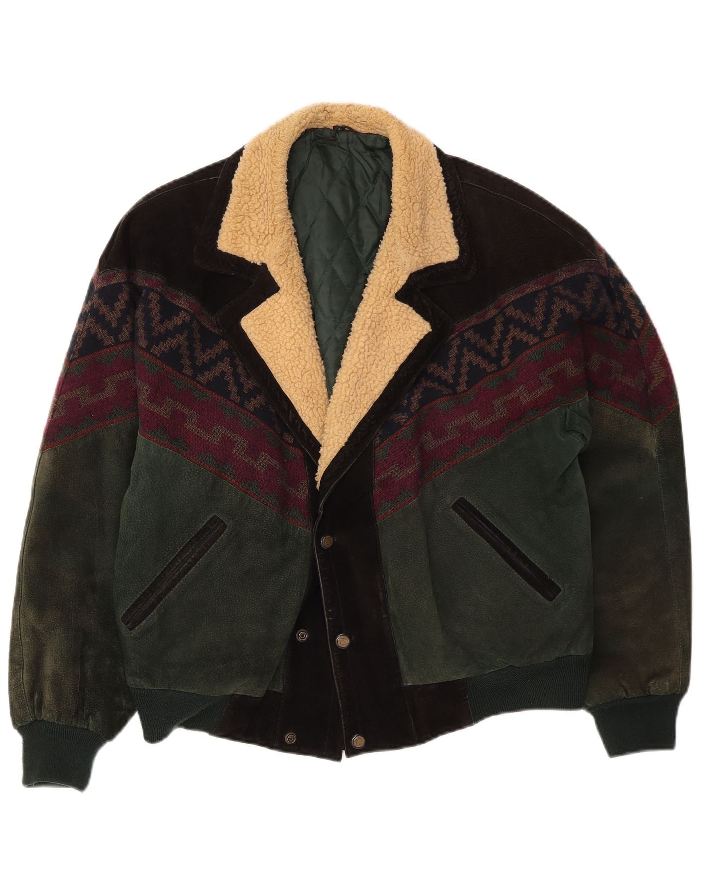 VINTAGE Mens Loose Fit Bomber Jacket IT 48 Medium Multicoloured Geometric
