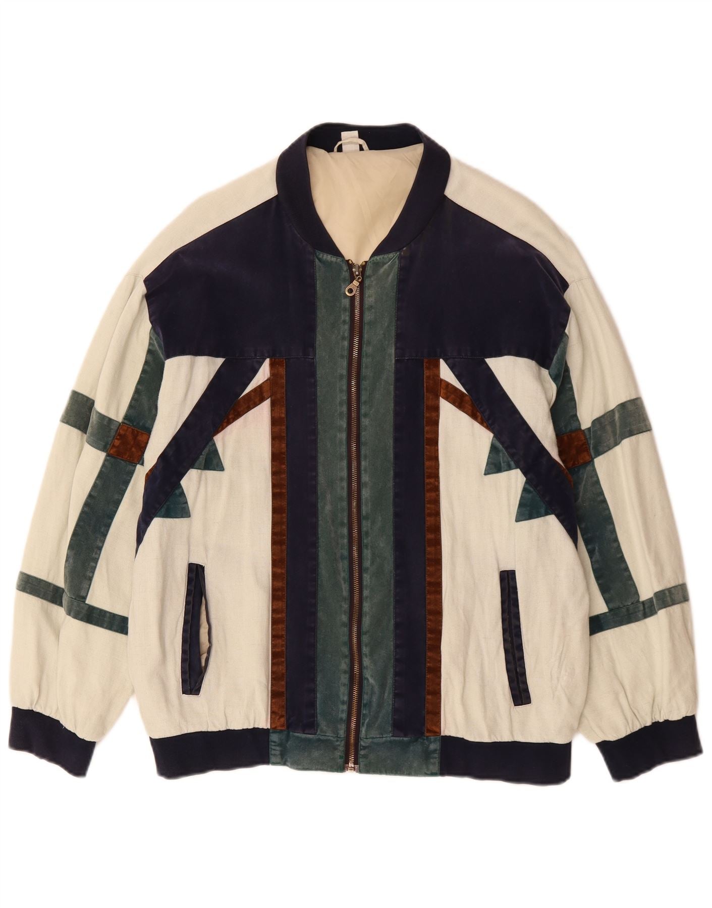 VINTAGE Veste bomber coupe ample pour homme UK 36 Petit colorblock blanc cassé