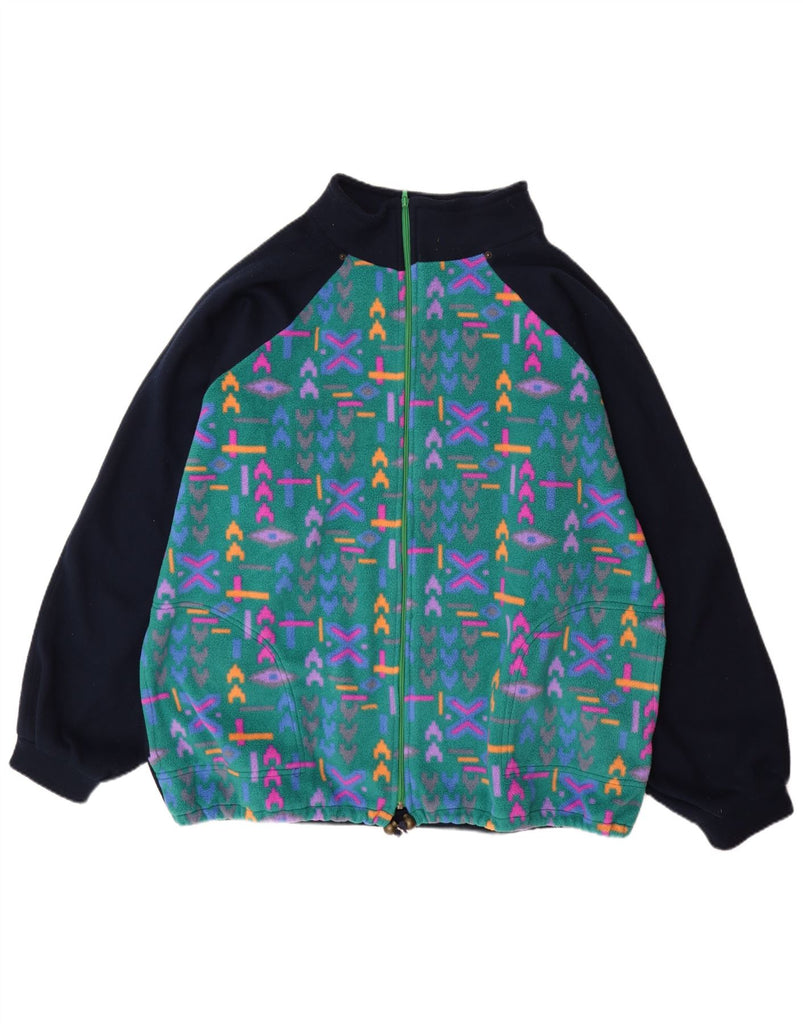 VINTAGE Veste polaire coupe ample pour homme UK 42 XL Polyester géométrique vert