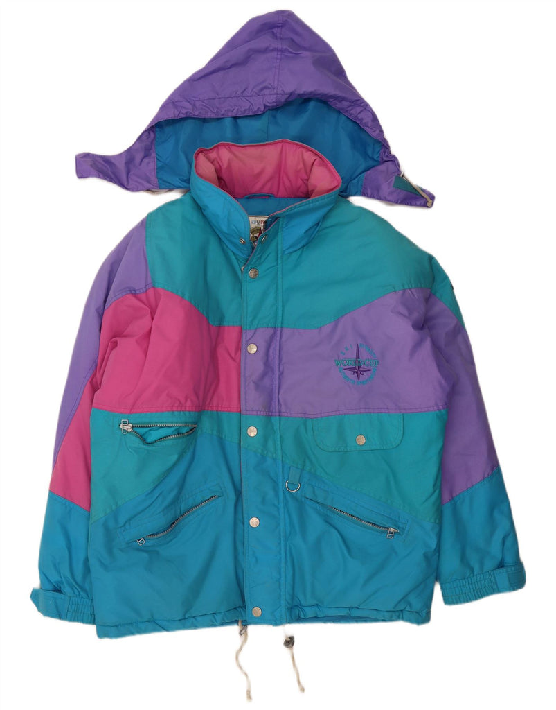 VINTAGE Veste de ski à capuche coupe ample pour homme UK 38 Bleu moyen Colourblock