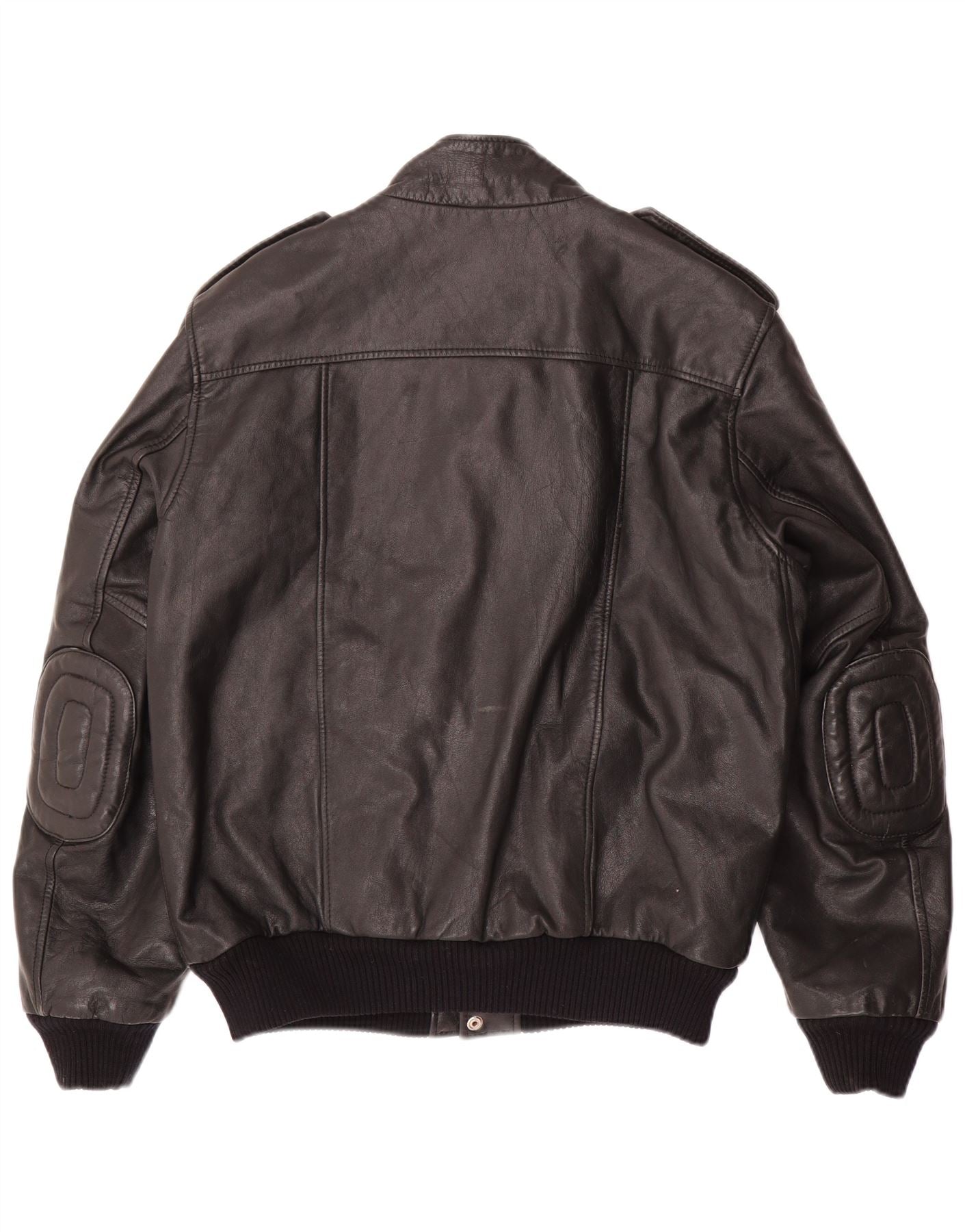 VINTAGE Veste en cuir militaire pour homme IT 54 2XL Cuir noir