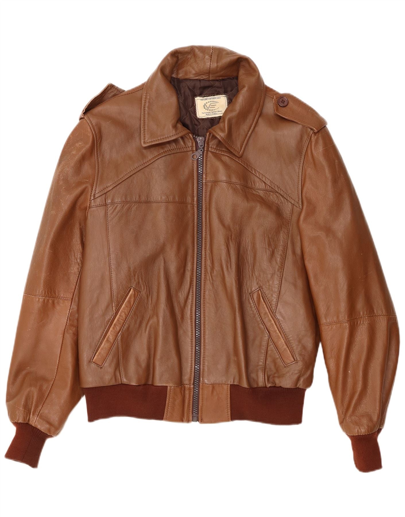 Home > Vestes en cuir vintage > Vestes en cuir marron vintage > VINTAGE Veste en cuir militaire pour hommes UK 40 Grand cuir brun