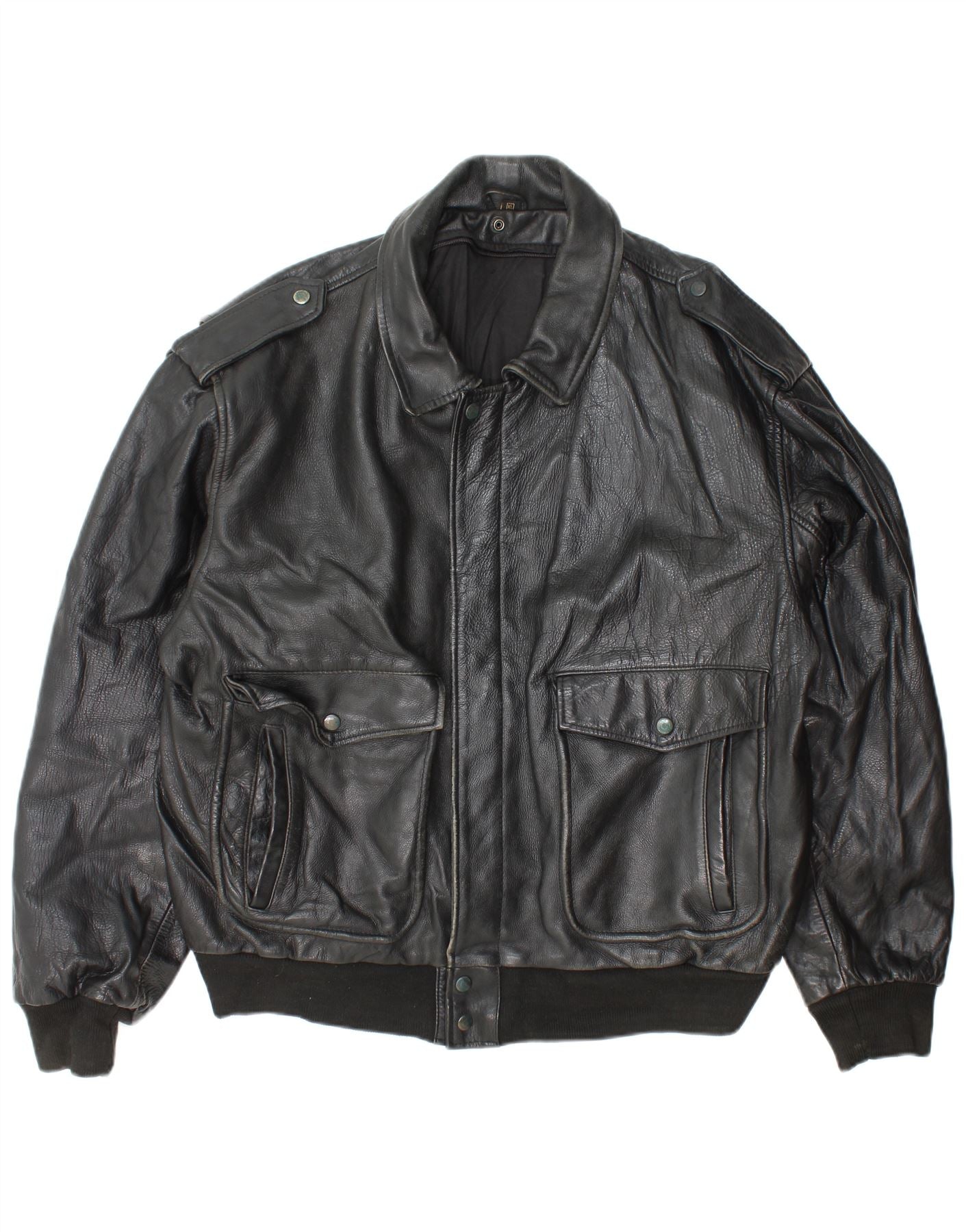 veste en cuir militaire vintage pour homme UK 42 XL Cuir noir