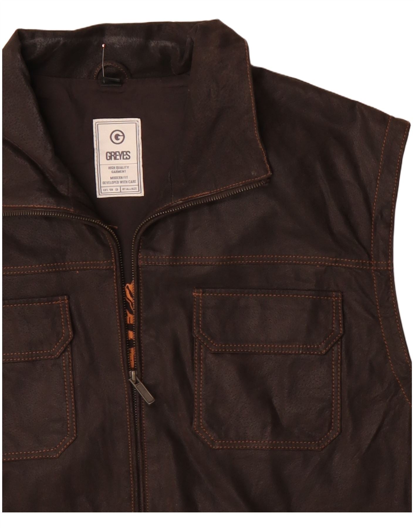 vintage Mens Modern Fit Gilet en cuir Taille unique Cuir marron