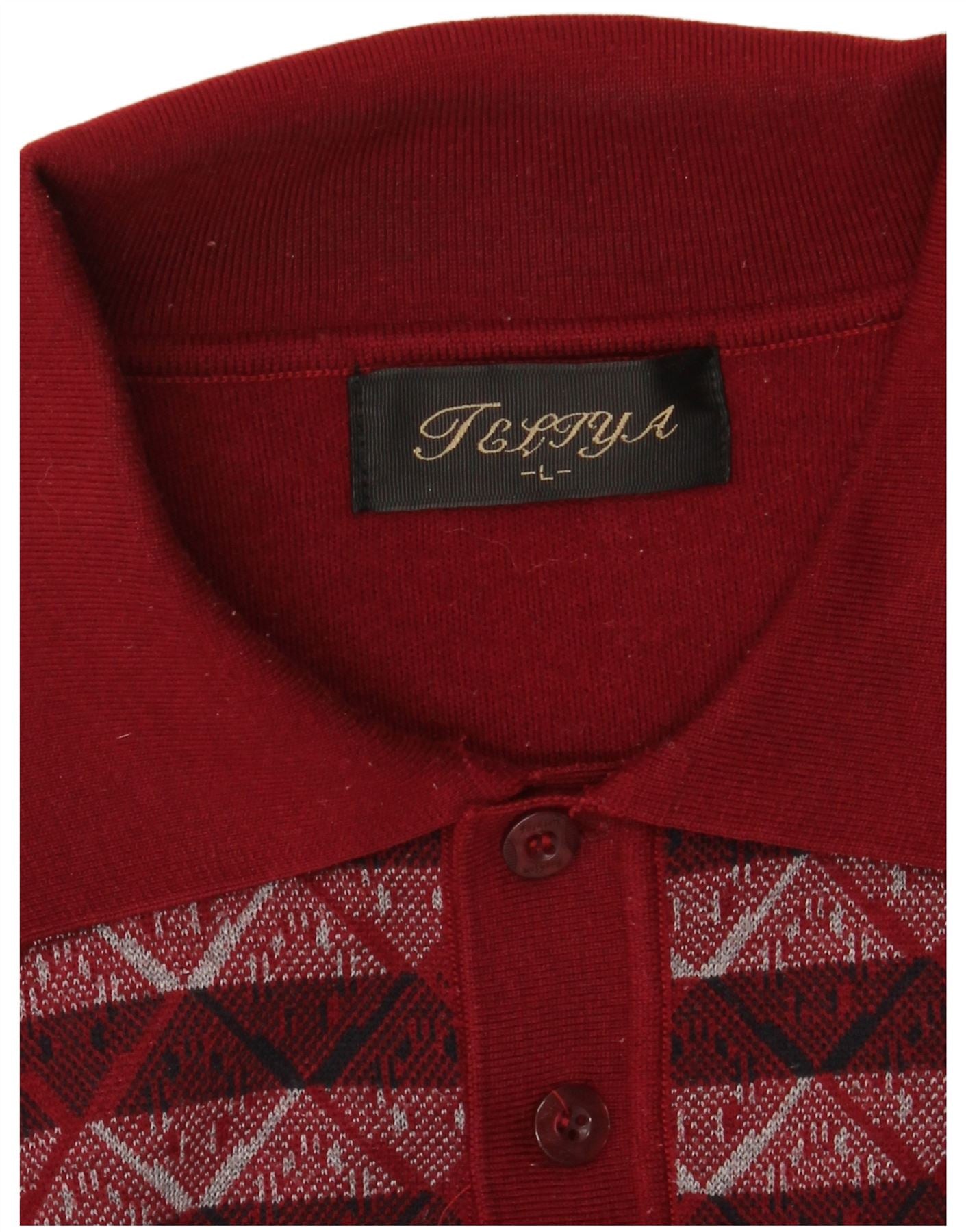 VINTAGE Mens Polo Neck Jumper Pull Grand Bordeaux Géométrique