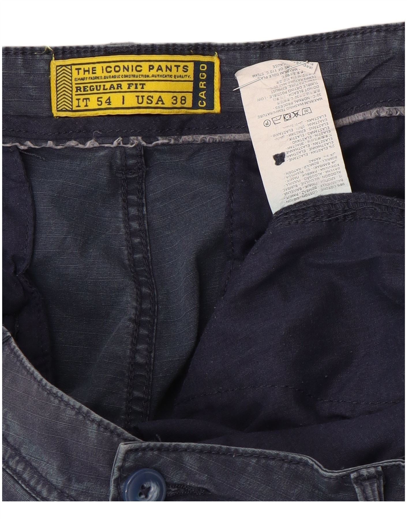 vintage Mens Regular Fit Cargo Shorts W38 XL Bleu Marine Coton