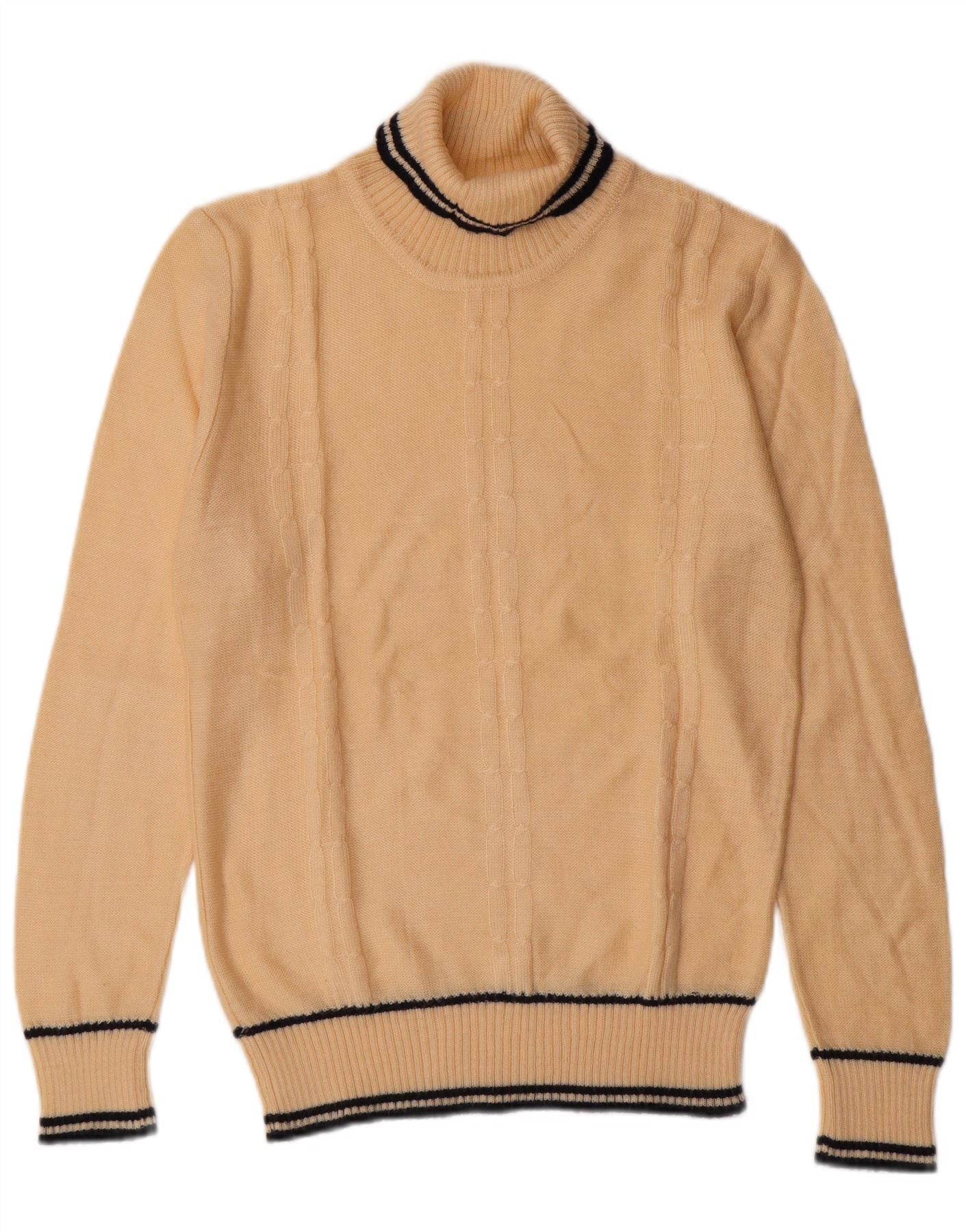 VINTAGE Homme Col Roulé Pull Pull Petit Beige Rayé Classique