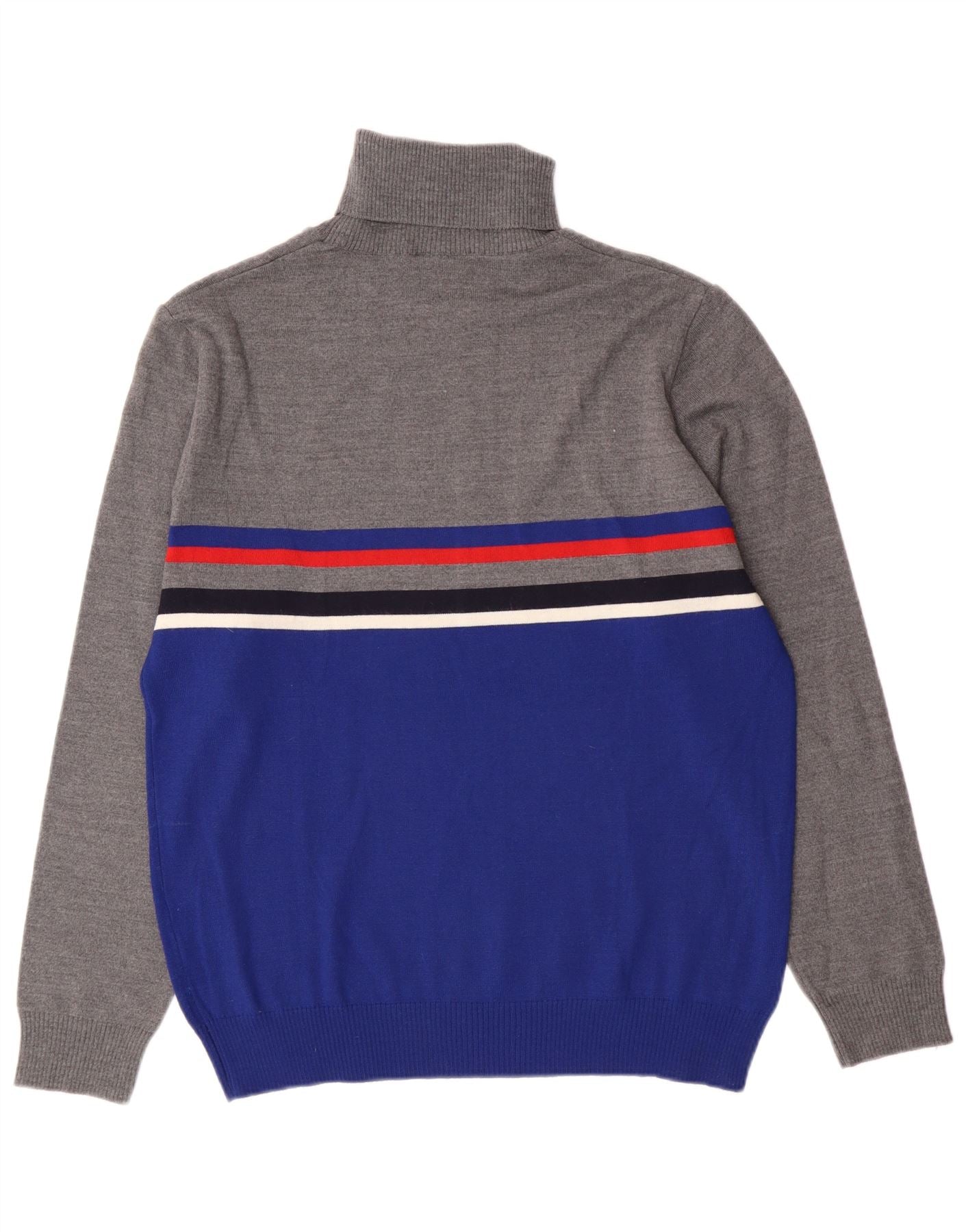 vintage Mens Roll Neck Jumper Pull XL Gris Colorblock Acrylique