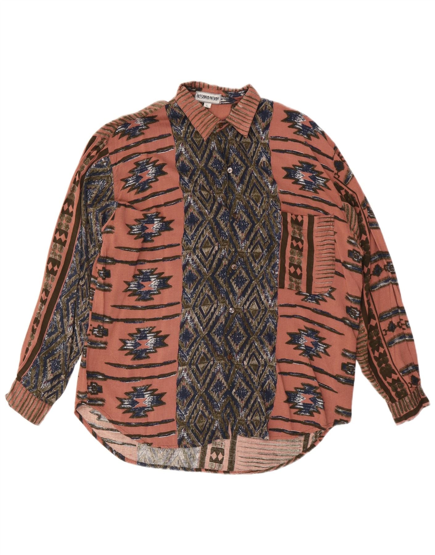 VINTAGE Chemise Homme Grande Rose Géométrique